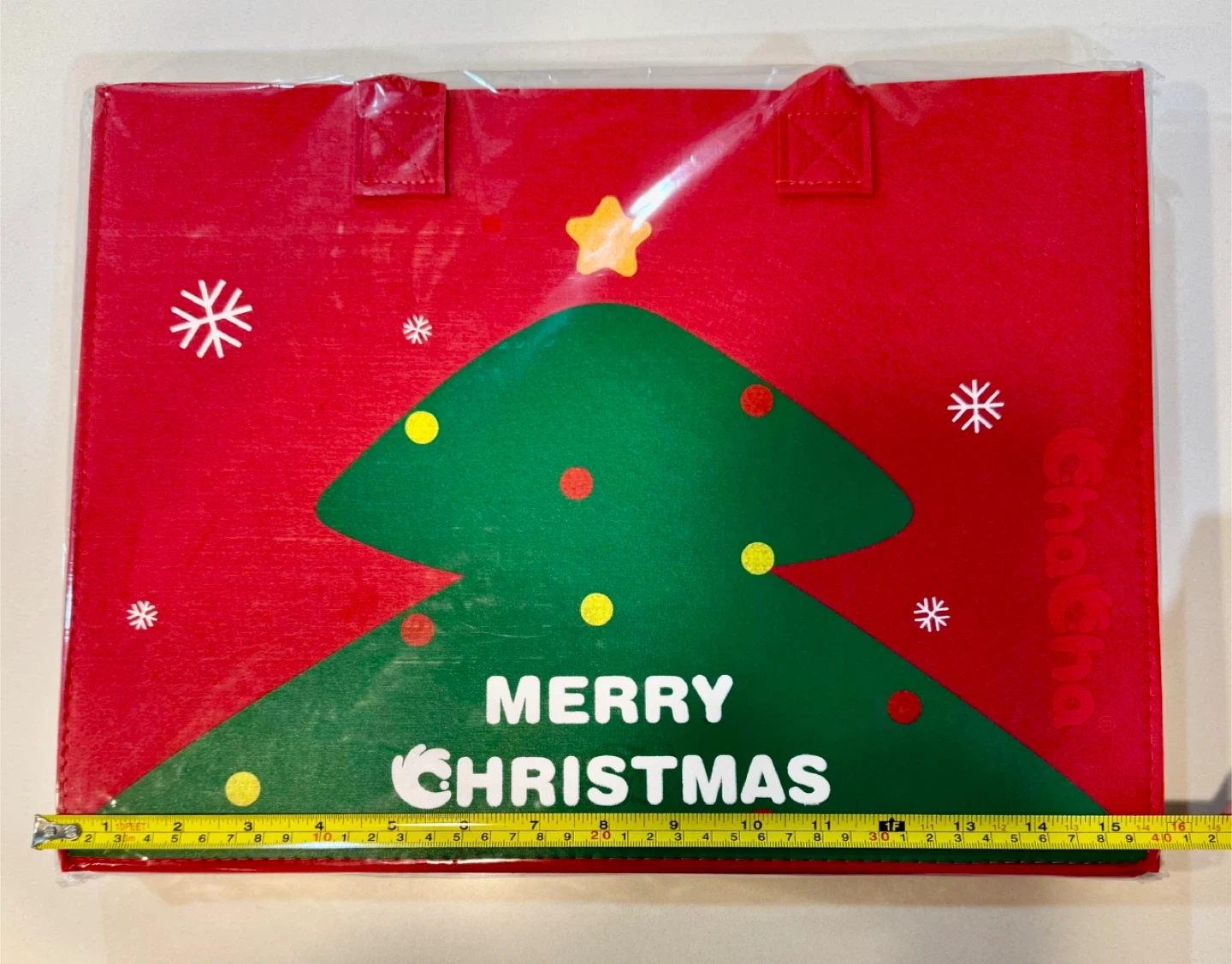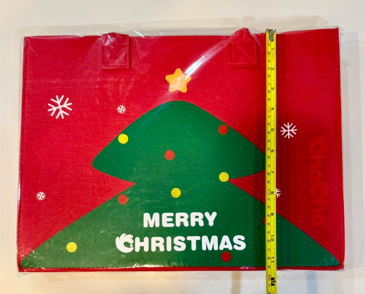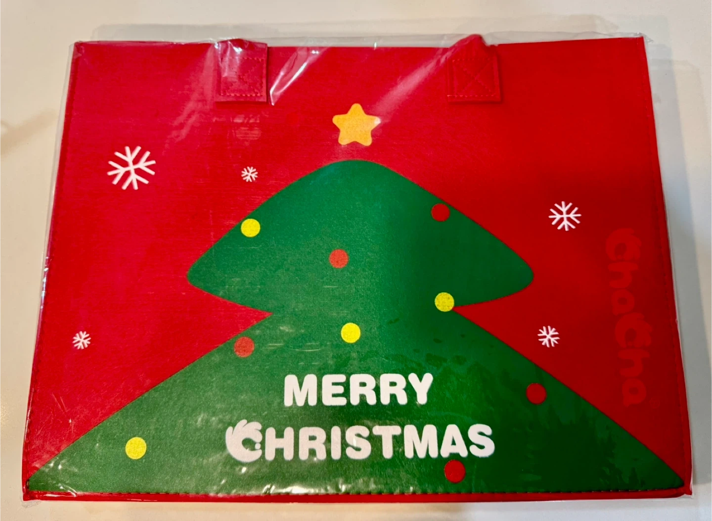 Brand new ChaCha Christmas tote bag! It's red with a festive Christmas tree design. Great for carrying gifts or groceries during the holiday season!