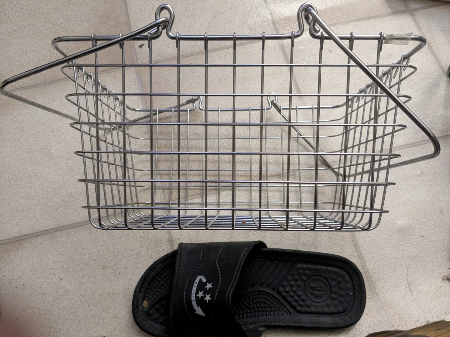 Selling a metal wire basket, perfect for storage or organizing items around the house. It's in good condition and ready for a new home!