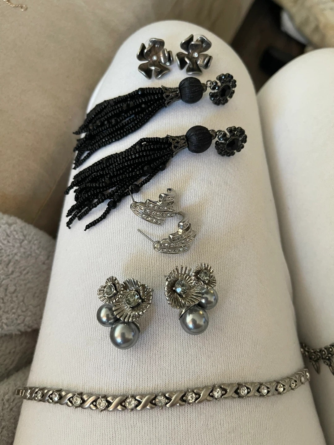Selling a collection of earrings and bracelets! There are a variety of styles, from floral to beaded. Perfect for adding a little sparkle to your outfits!