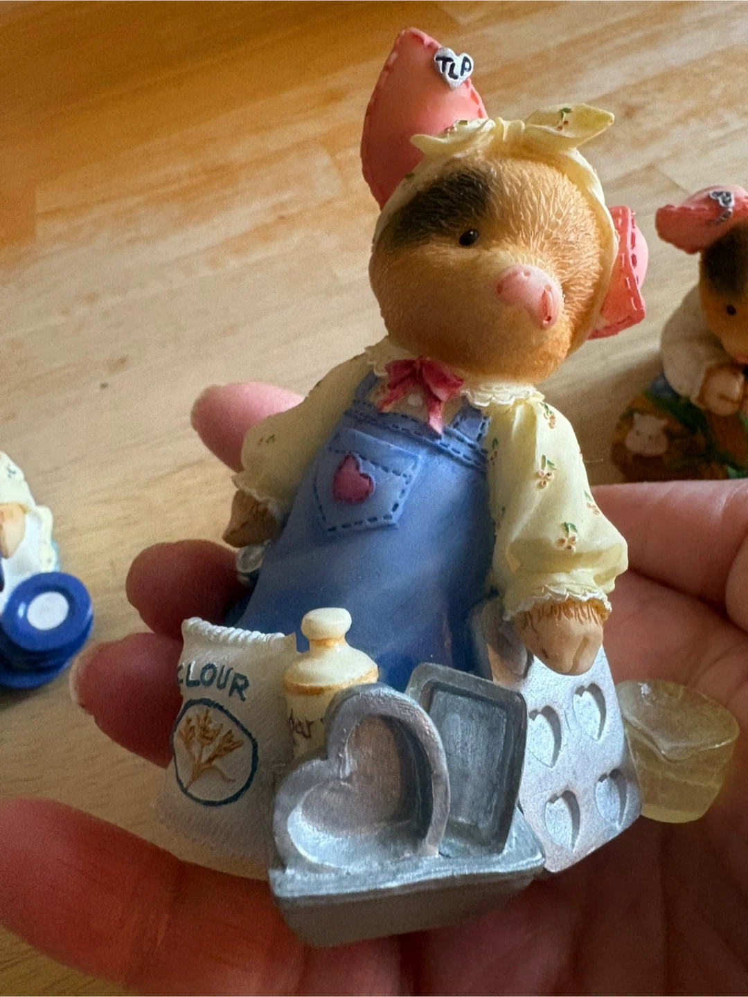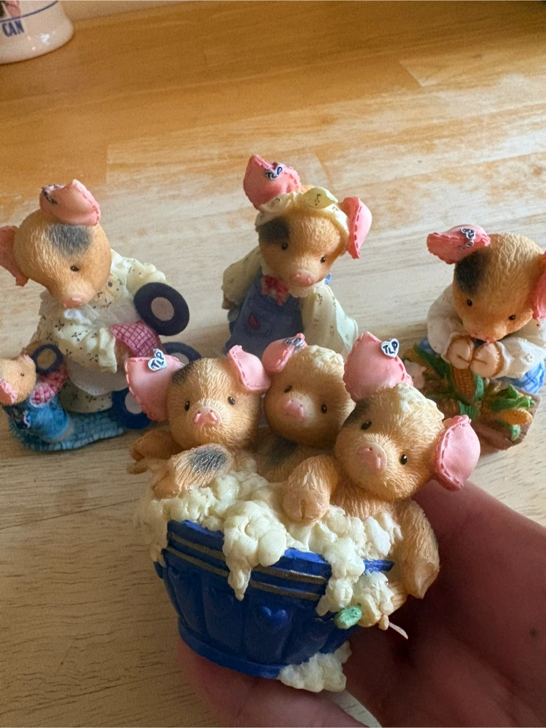 I'm selling a set of adorable Enesco Tailor & Co. pig figurines! This Little Piggy figurine's. These charming collectibles feature various pig characters in different scenes, adding a touch of whimsy to any space. They are in great condition and ready to bring joy to a new home!