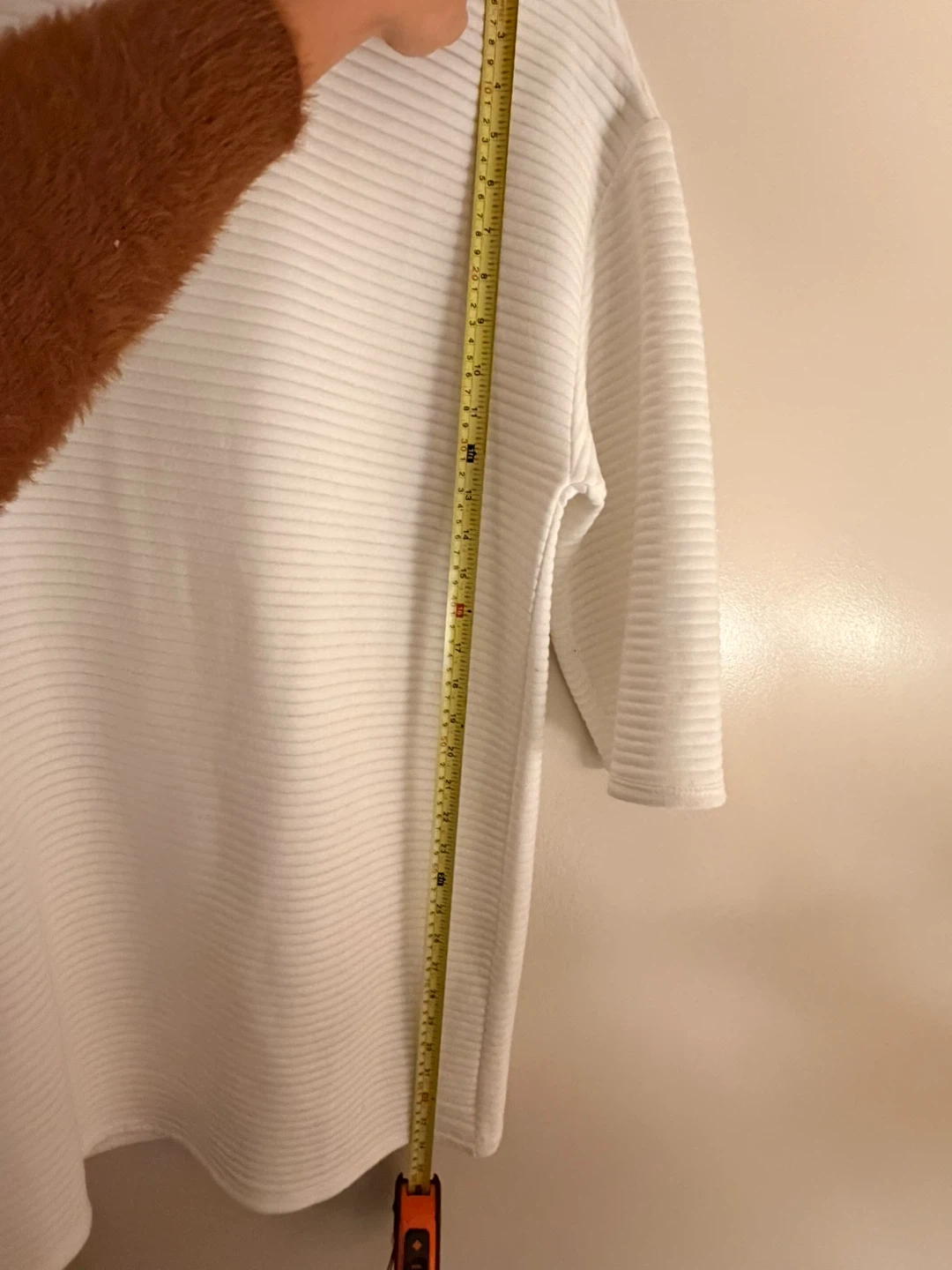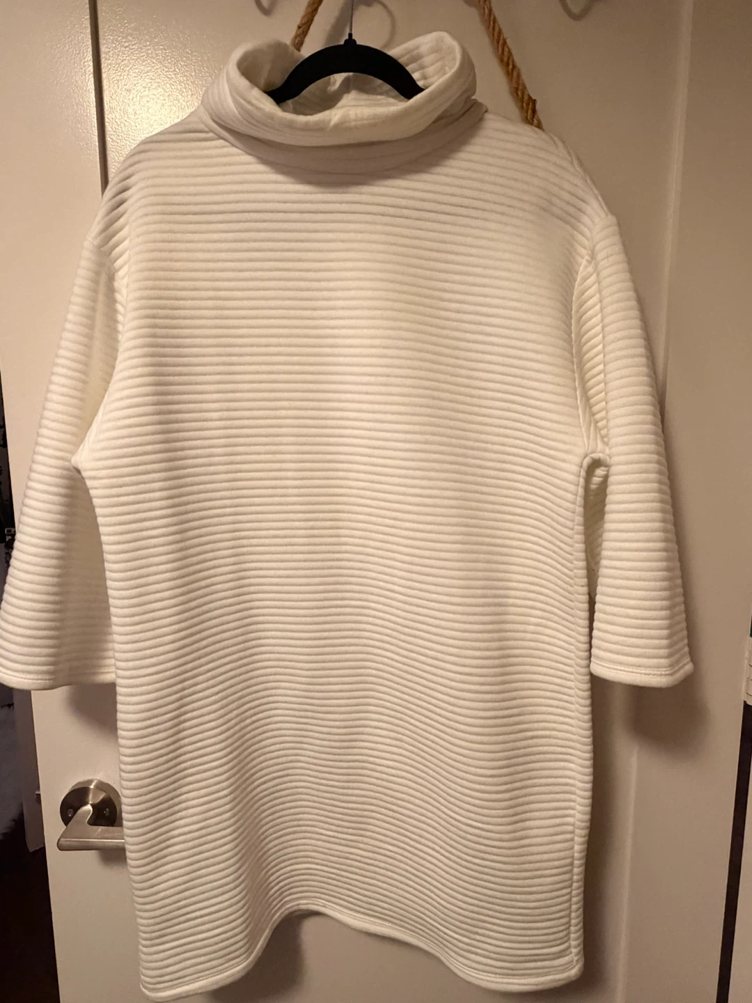 Selling a lovely white ribbed dressIt's in great condition and would be a wonderful addition to your wardrobe. The material is soft and comfortable, It measures approximately 75 CM in length.