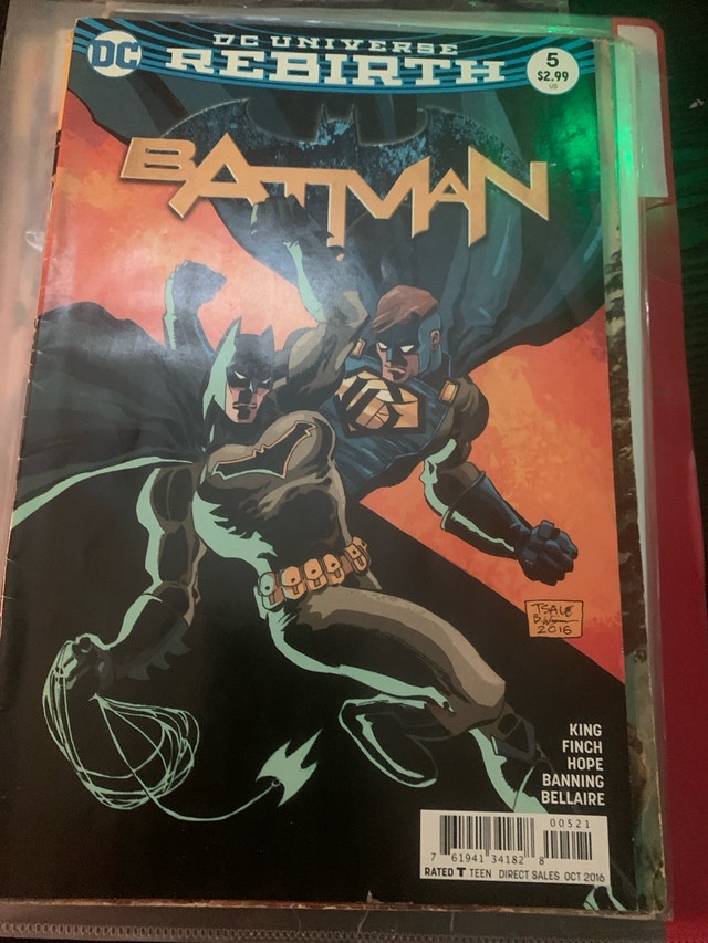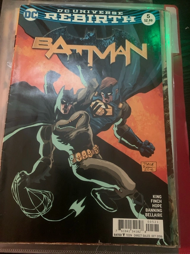 This is a DC Universe Rebirth, Batman comic. It's issue number 5 and looks to be in good condition, ready to join your collection or start a new adventure into the world of Gotham's caped crusader. I've checked online and similar comics are selling in the range of $5-$15 CAD.
