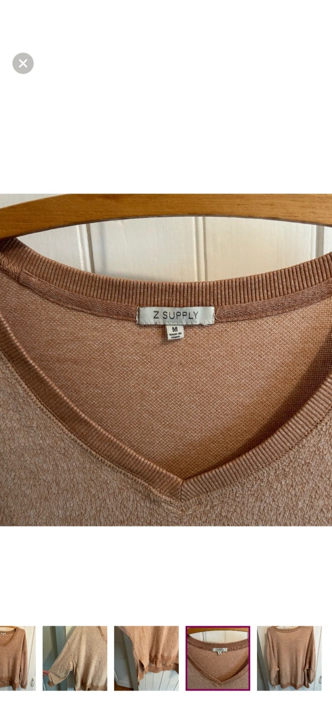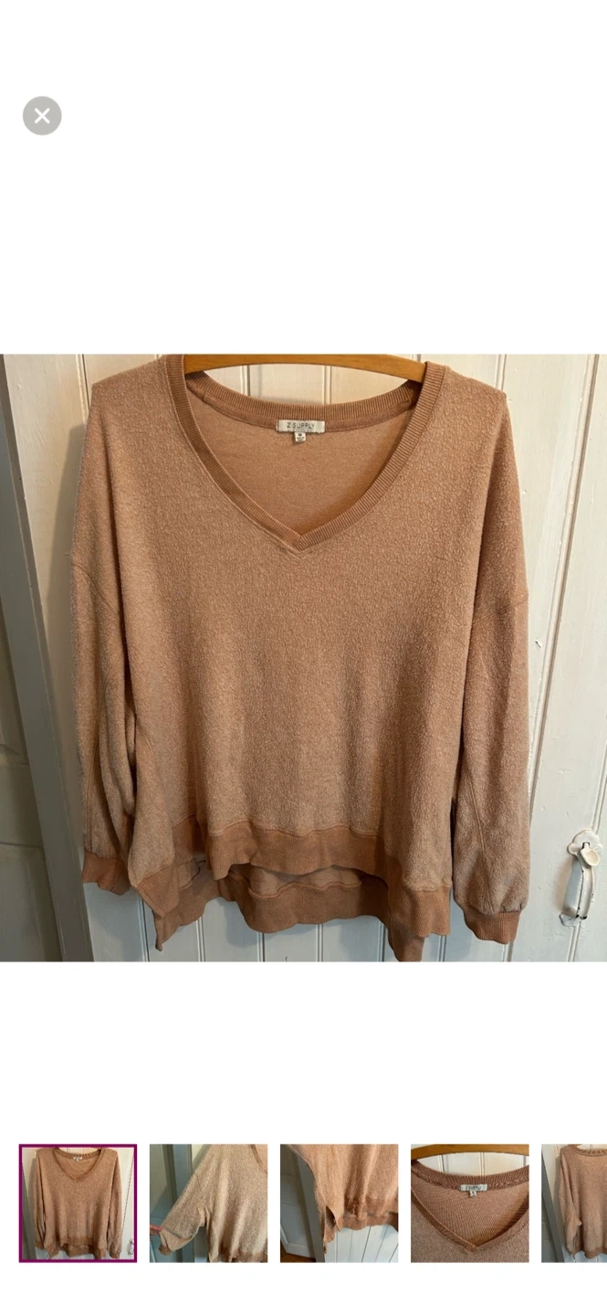 Z supply brand. “Inside out” style vneck fleece sweater. Brown in colour. Size medium. Brand new condition