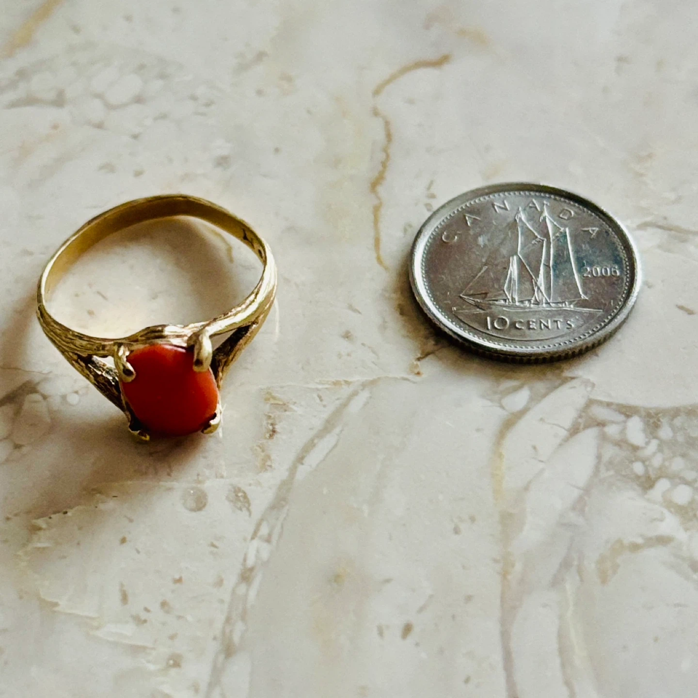 Selling a lovely coral and yellow gold ring. Perfect for adding a pop of colour to your outfit! Stamped / hallmarked. 2.273g. Size 6.5 but can be adjusted