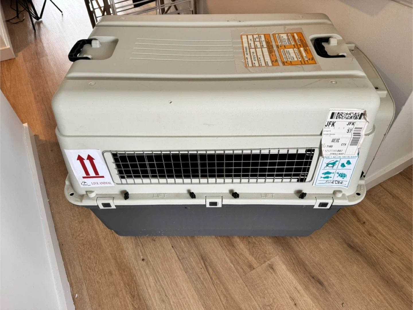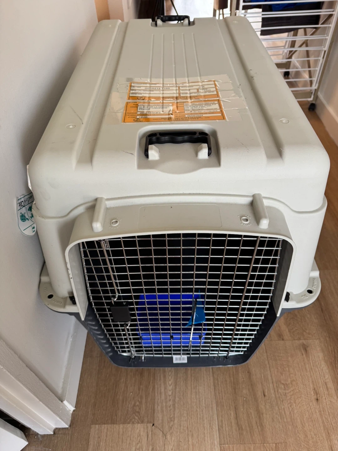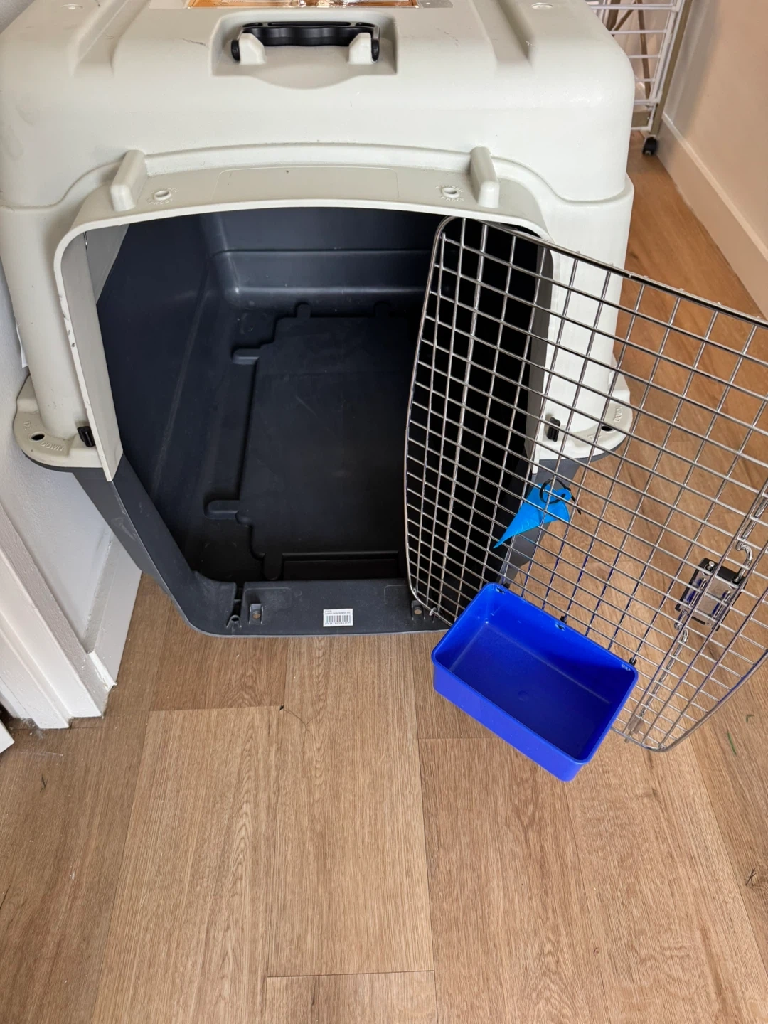 Selling a Petmate Sky Kennel pet carrier. It's in good condition and ready for your furry friend's travels or vet visits. It features a durable construction and a secure latching door for safety. It also includes a water bowl.
