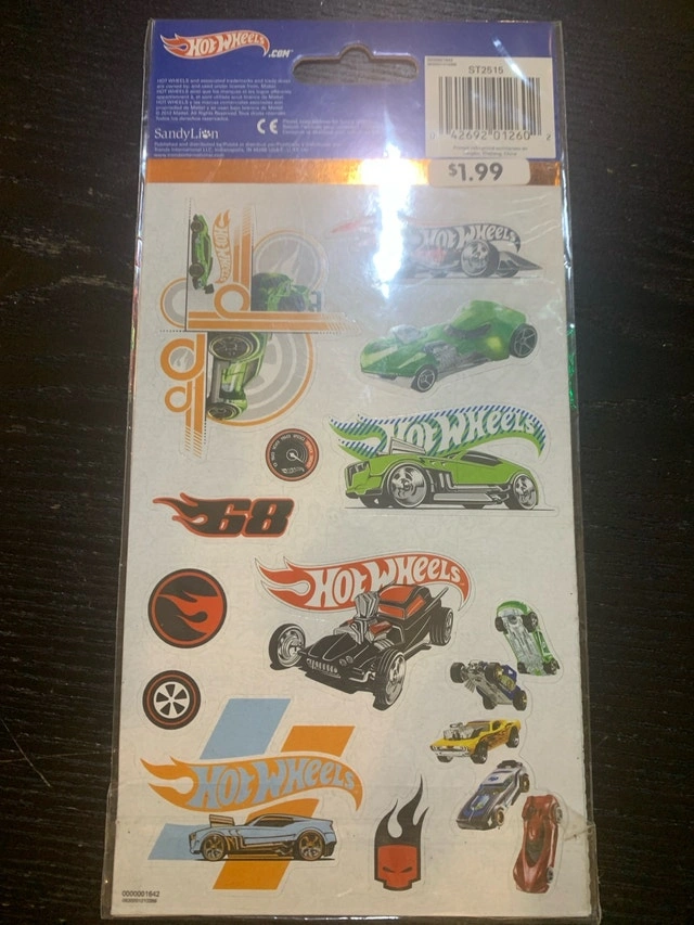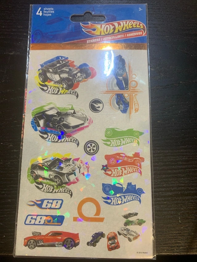I'm offering a pack of new Hot Wheels stickers! These are perfect for decorating notebooks, cards, or anything else you want to add a little racing flair to. The pack contains four sheets of colourful and vibrant Hot Wheels themed stickers. If the ad is still up, then yes, they're still available!