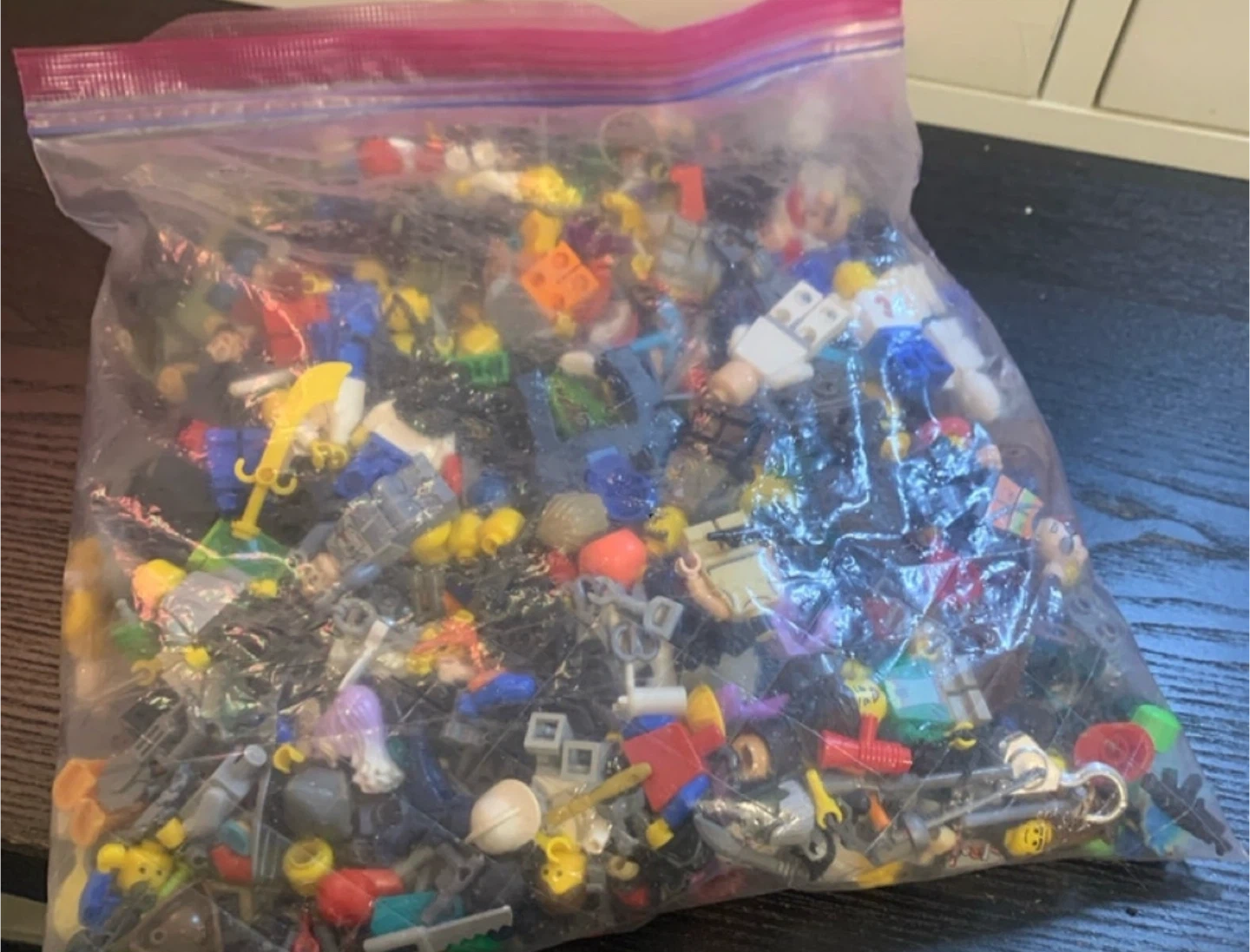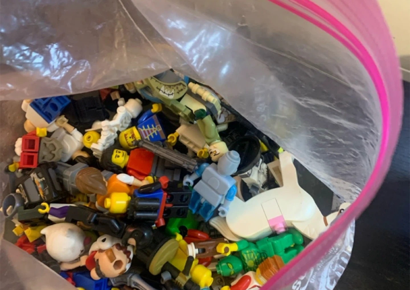 Bag of LEGO Mini figures and Parts