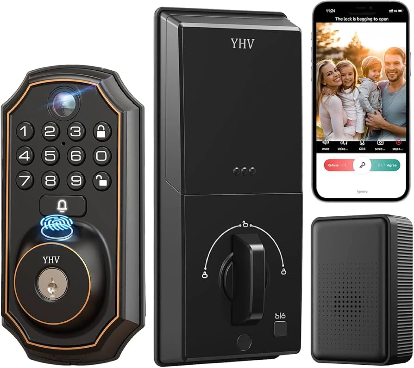 Keyless Entry Door Lock with Camera Fingerprint Smart Door Lock with App Remote Control, Wi-Fi Connected Electronic Keypad Code Deadbolt Auto Unlock for Front Door
