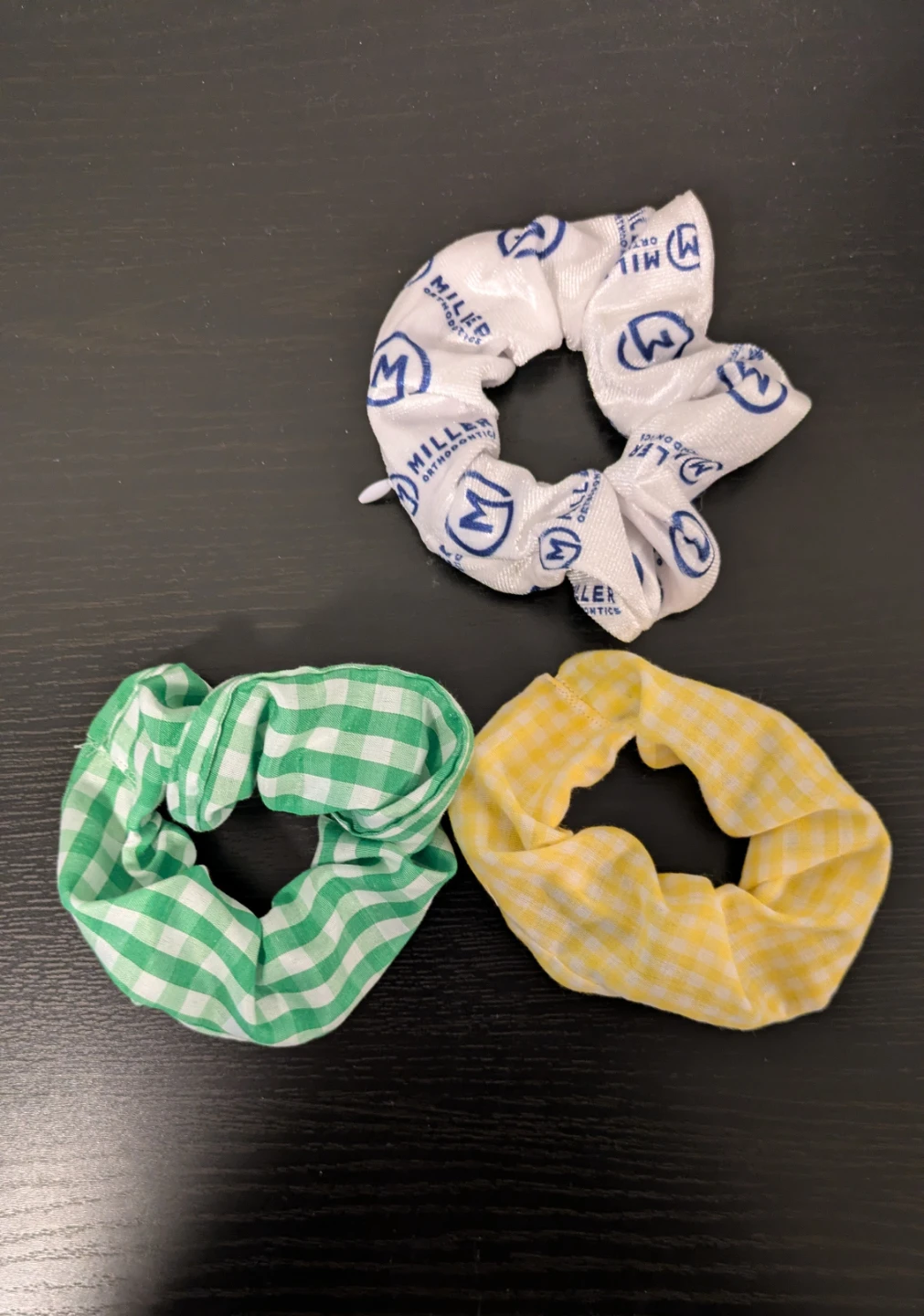 Gifting three scrunchies! The white scrunchie has a zippered compartment which is handy for storing keys when going for a run.