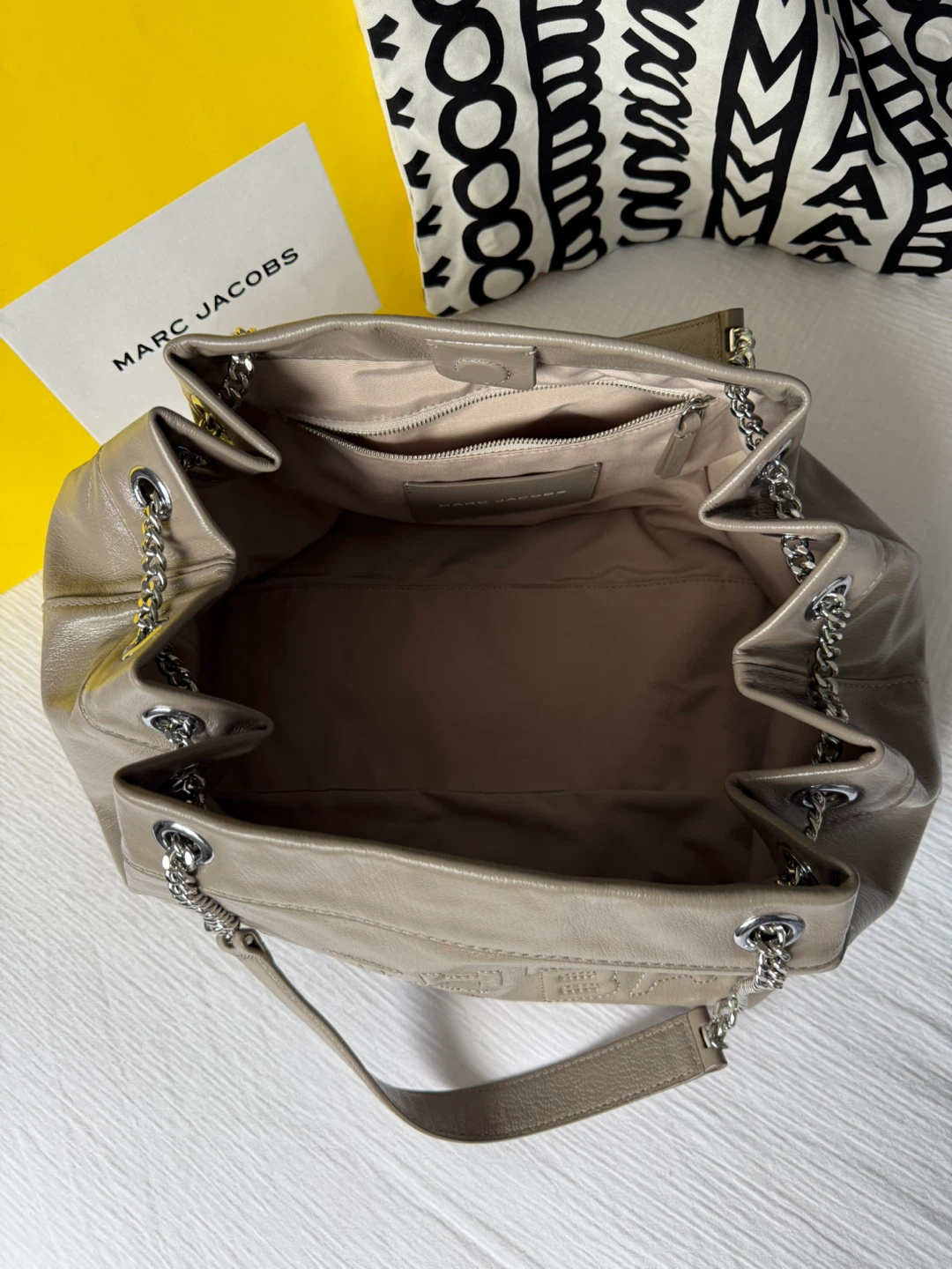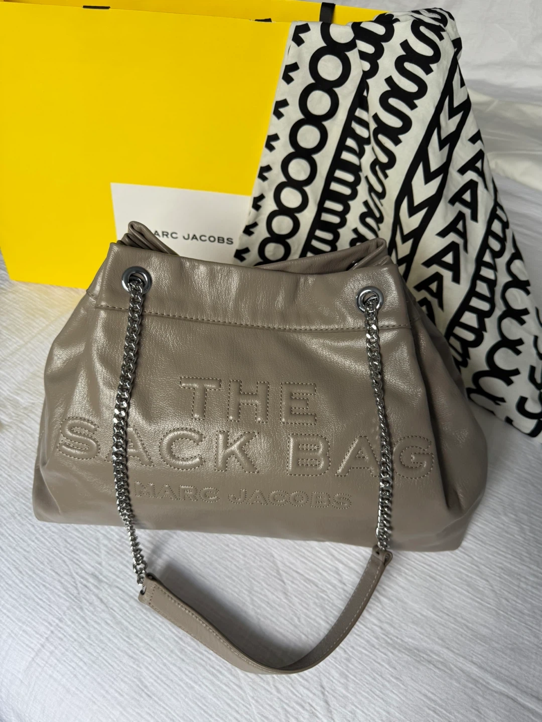 Selling a Marc Jacobs leather chain sack bag in a lovely taupe colour! It's brand new and comes with its original dust bag and shopping bag. This stylish bag is perfect for everyday use and adds a touch of elegance to any outfit