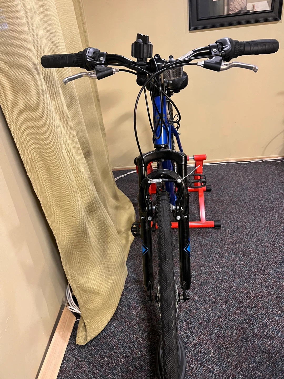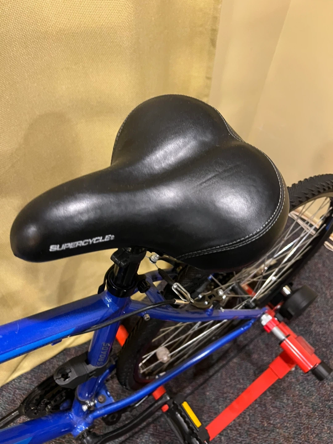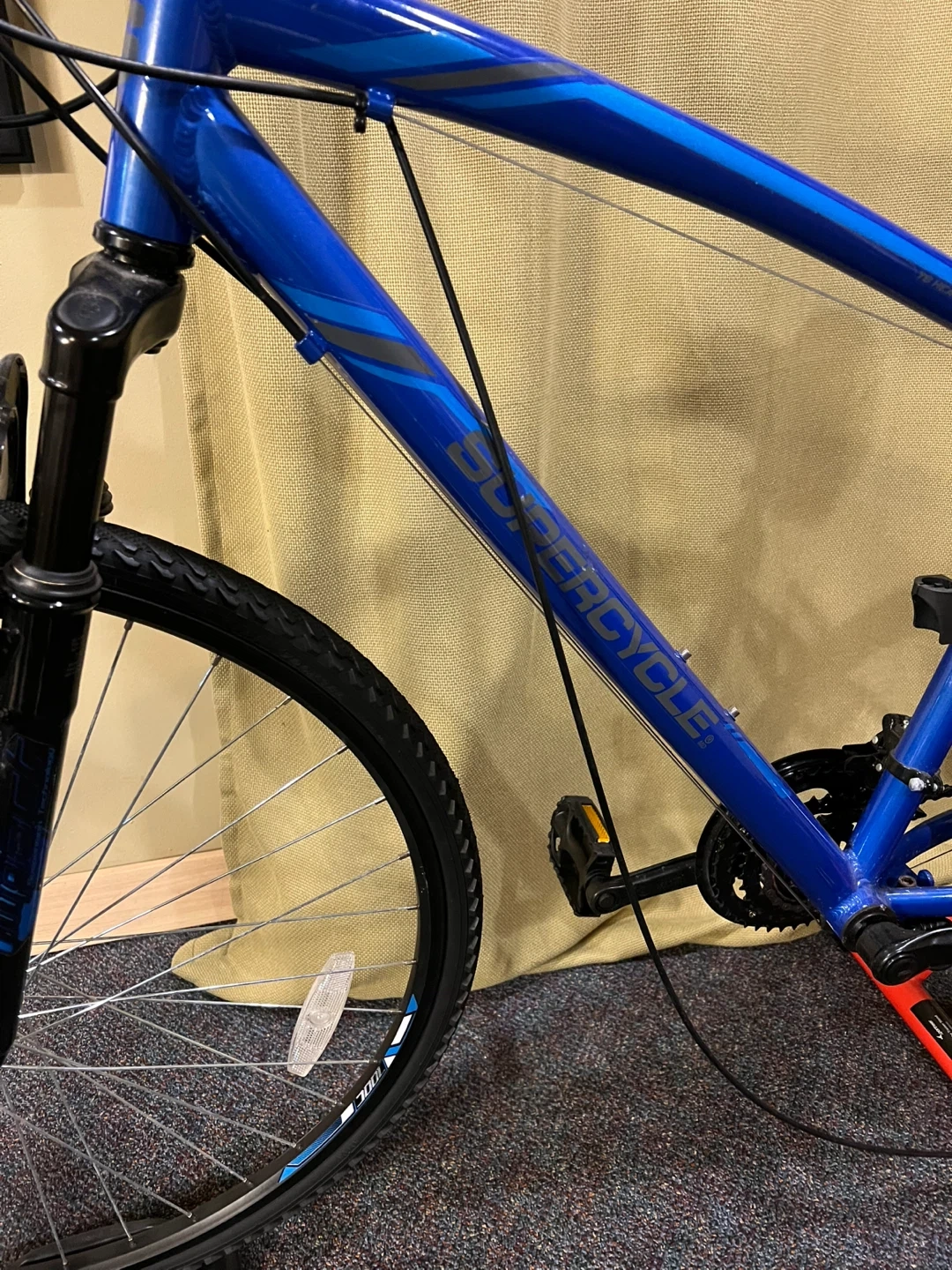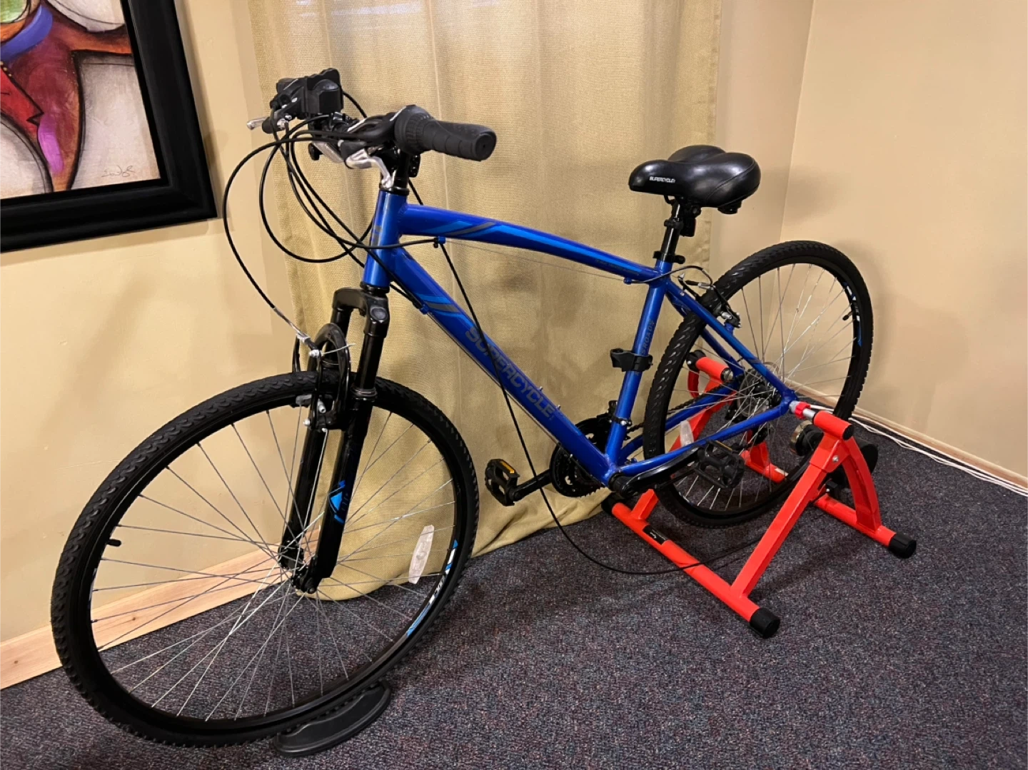 Supercycle Krossroads Hybrid Bike with Shimano 7 speed revo grip shifting system & Sportsneer bike trainer. Excellent condition- has only been ridden indoors using Sportsneer trainer.