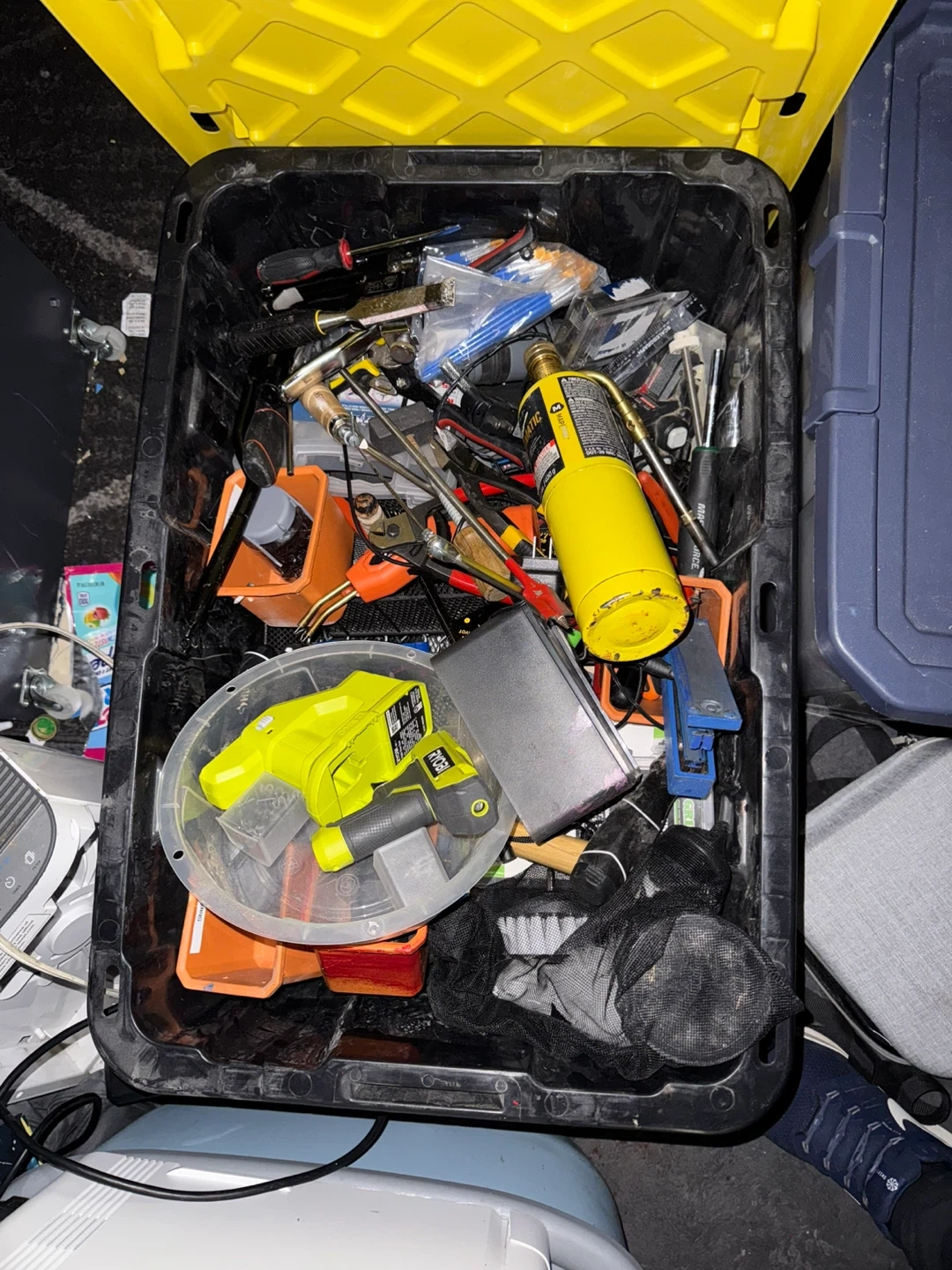 Tote of Various Tools and Equipment