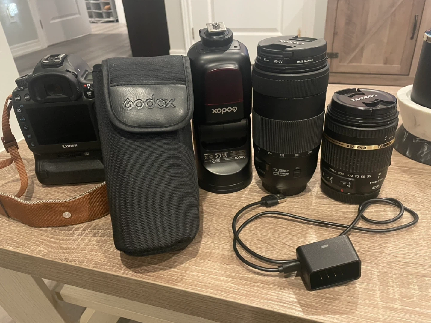 Selling a Canon EOS 5Ds camera body in great condition! Includes a variety of lenses and a Godox flash unit. Perfect for photography enthusiasts or professionals looking for a reliable and high-resolution setup. Comes with everything you see in the pictures!