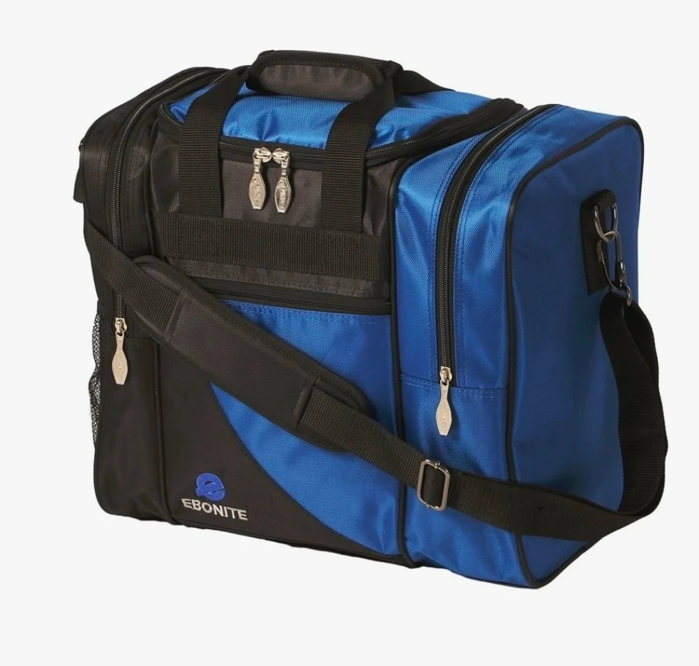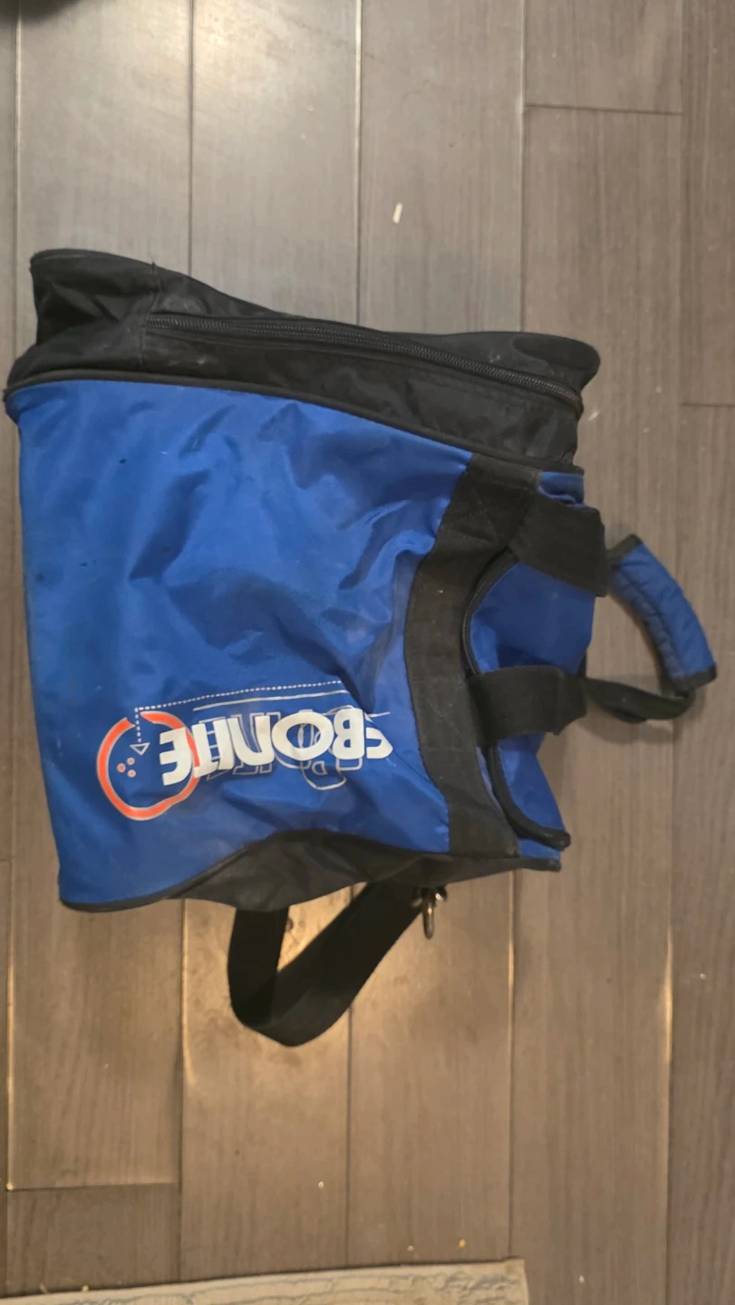 Selling a blue and black Ebonite bowling bag! It's in used condition, but still has lots of life left. Great for carrying your bowling ball and shoes to the alley!