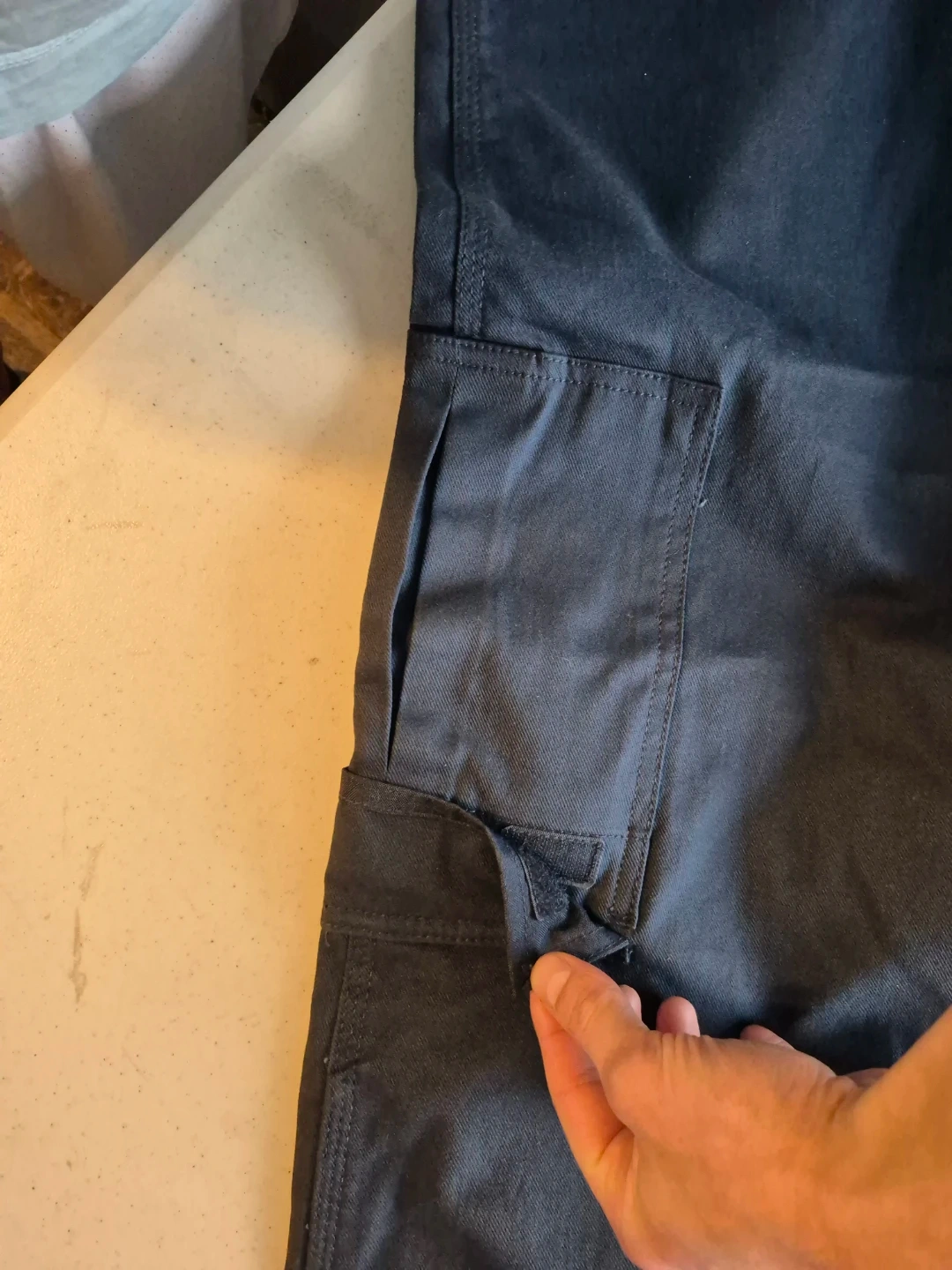 Zipper fly, rivets at stress points, and a stain‑repellent finish.