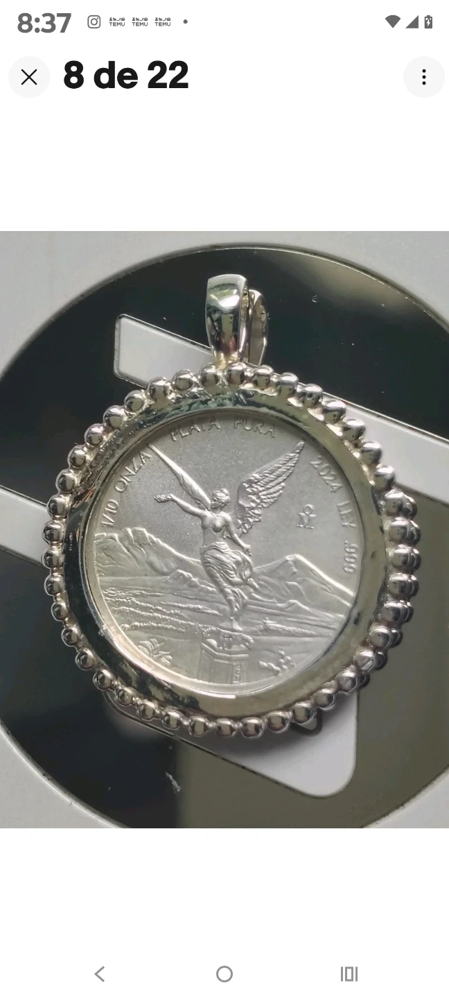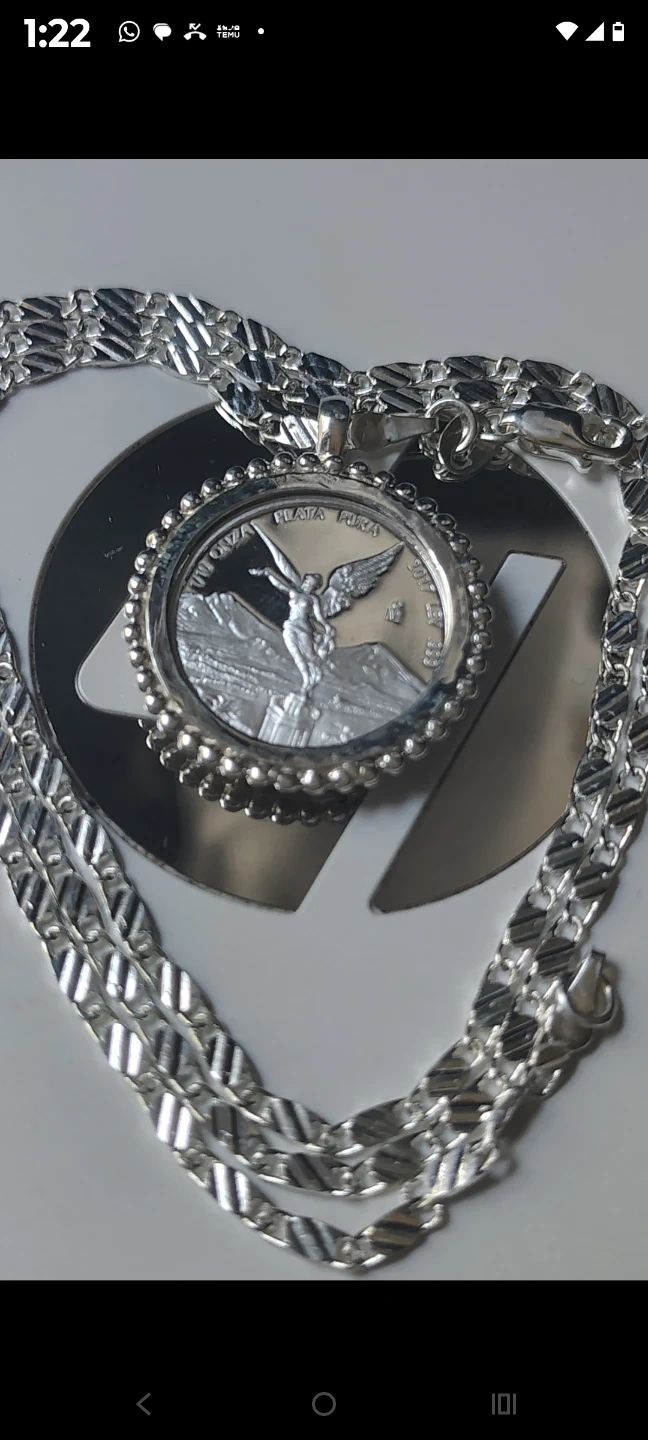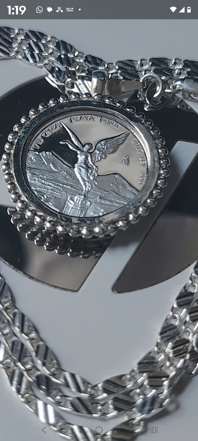 Únicos y originales collares plateados con monedas de plata libertad de México 1/10 oz. Plata fina. Diferentes estilos.