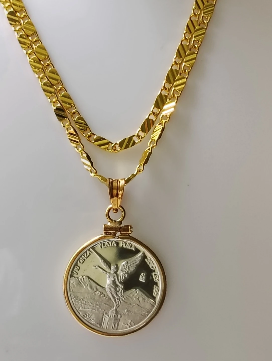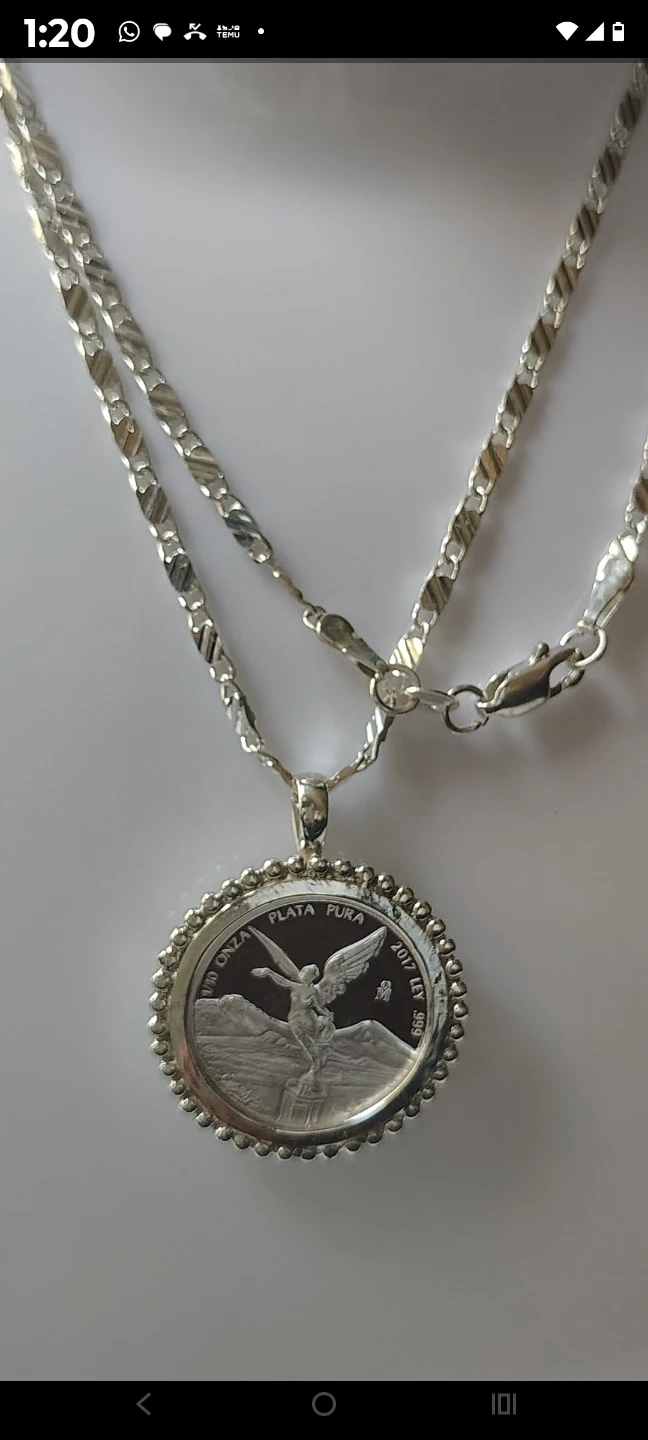 Únicos y originales collares plateados con monedas de plata libertad de México 1/10 oz. Plata fina. Diferentes estilos.