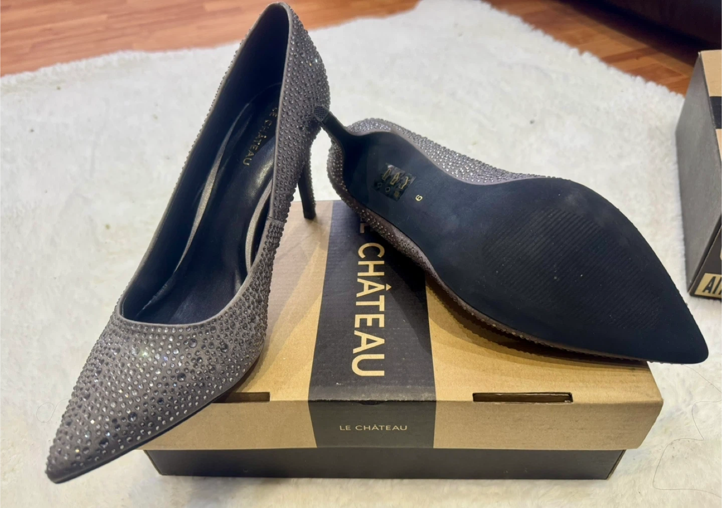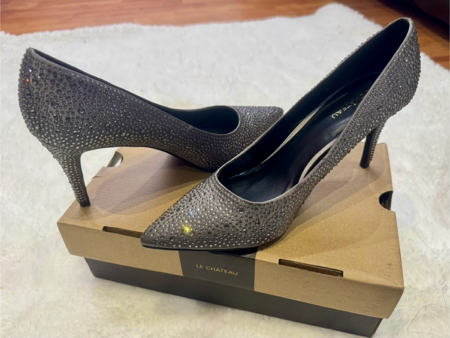 Selling a pair of Le Chateau heels in pewter. They are a size 9 and come with the original box. These heels are perfect for a night out or a special occasion. Originally bought for $89.95