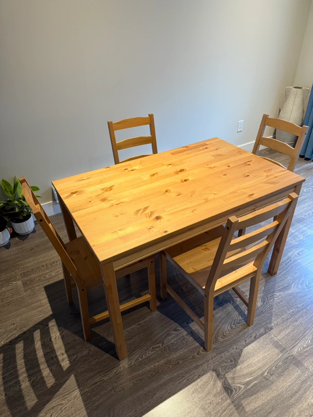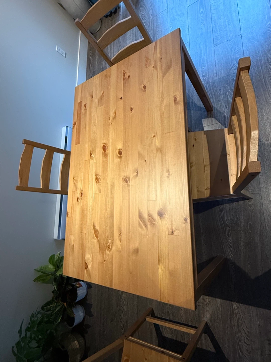 Selling a lovely IKEA dining table with four matching chairs. It's perfect for a small family or apartment. The set is in great condition and ready for a new home!