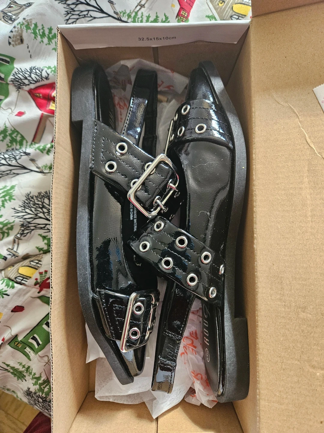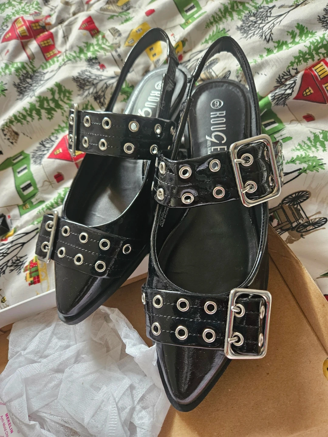 Selling a pair of Rouge Helium slingback flats in black! They are a size 9 and come with the original box. They have a unique buckle design. New