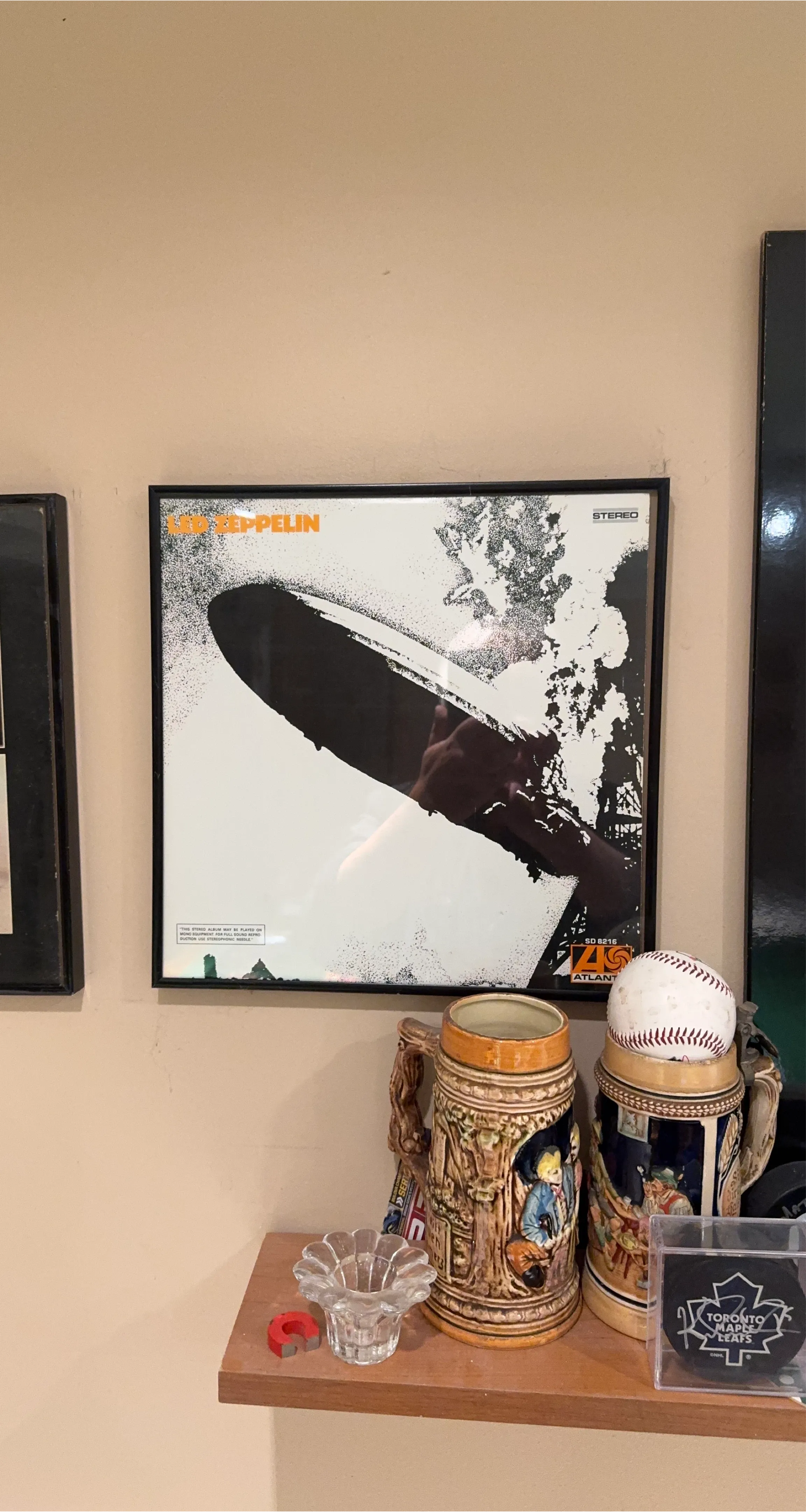 Selling a framed Led Zeppelin album art piece! It's a cool piece of music history featuring the iconic blimp. The frame is black and the print is in great shape. Perfect for any Zeppelin fan! Vinyl album is included.