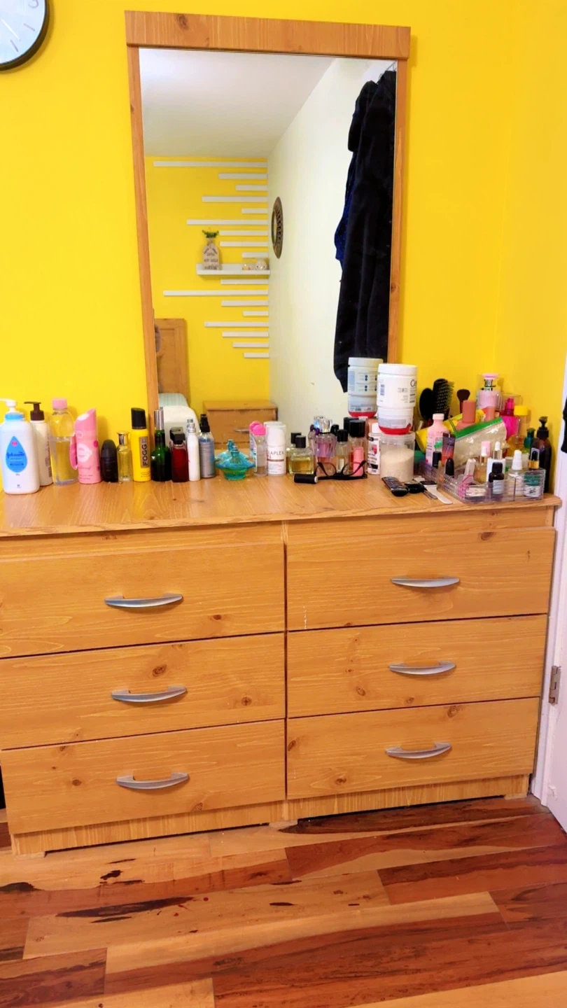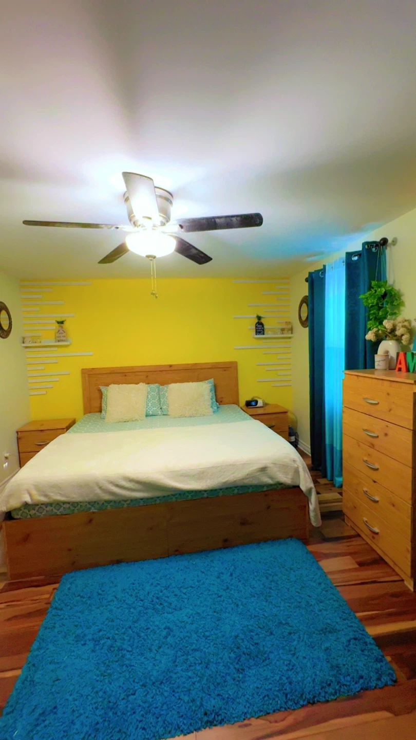 King Bedroom set including a bed frame, dresser, 6 drawer chest and two nightstands. All pieces are made of wood and in good condition. Perfect for furnishing a bedroom!