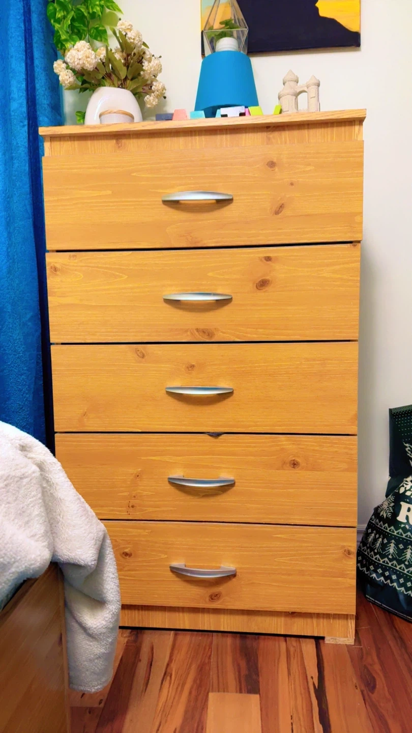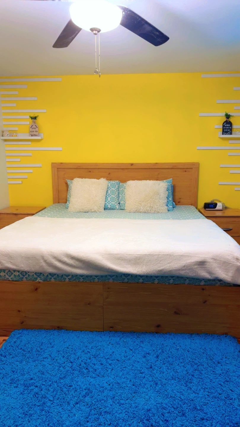 King Bedroom set including a bed frame, dresser, 6 drawer chest and two nightstands. All pieces are made of wood and in good condition. Perfect for furnishing a bedroom!