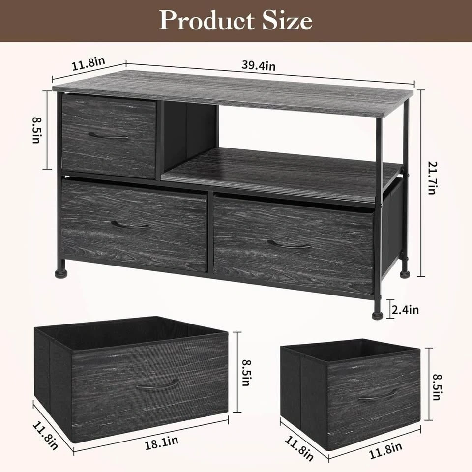 YCHF TV Stand Dresser with Fabric Drawers & Storage – Fits up to 45" TV, Open Shelves for Bedroom & Entryway – Black/Rustic Brown