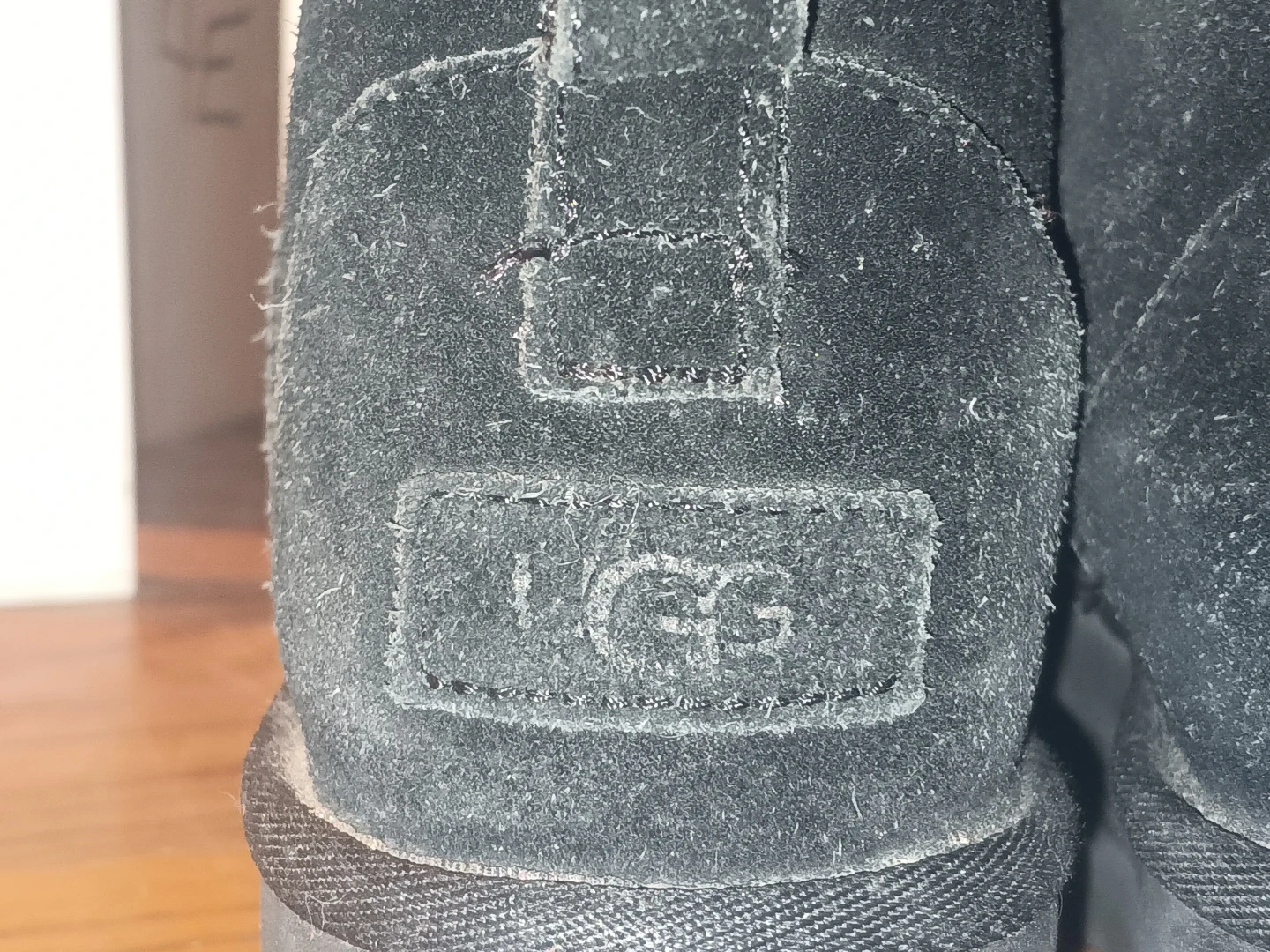 Selling a pair of UGG boots in black suede. They show signs of wear, as seen in the photos. They are perfect for keeping your feet warm and stylish during the colder months!