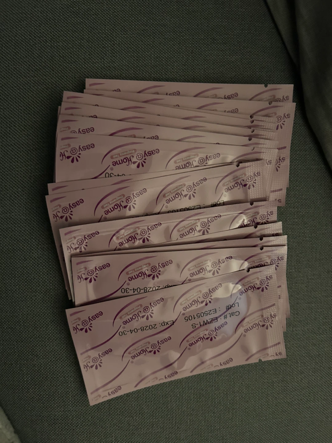 Selling a set of Easy@Home pregnancy tests. The expiration date is April 30, 2028