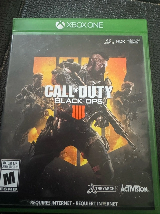 Selling a copy of Call of Duty Black Ops 4 for the Xbox One! This first-person shooter game delivers thrilling multiplayer action and intense zombie battles, perfect for hours of entertainment. I've really enjoyed playing this, but it's time to pass it along to a new home. The disc has some minor scratches but plays perfectly fine.
