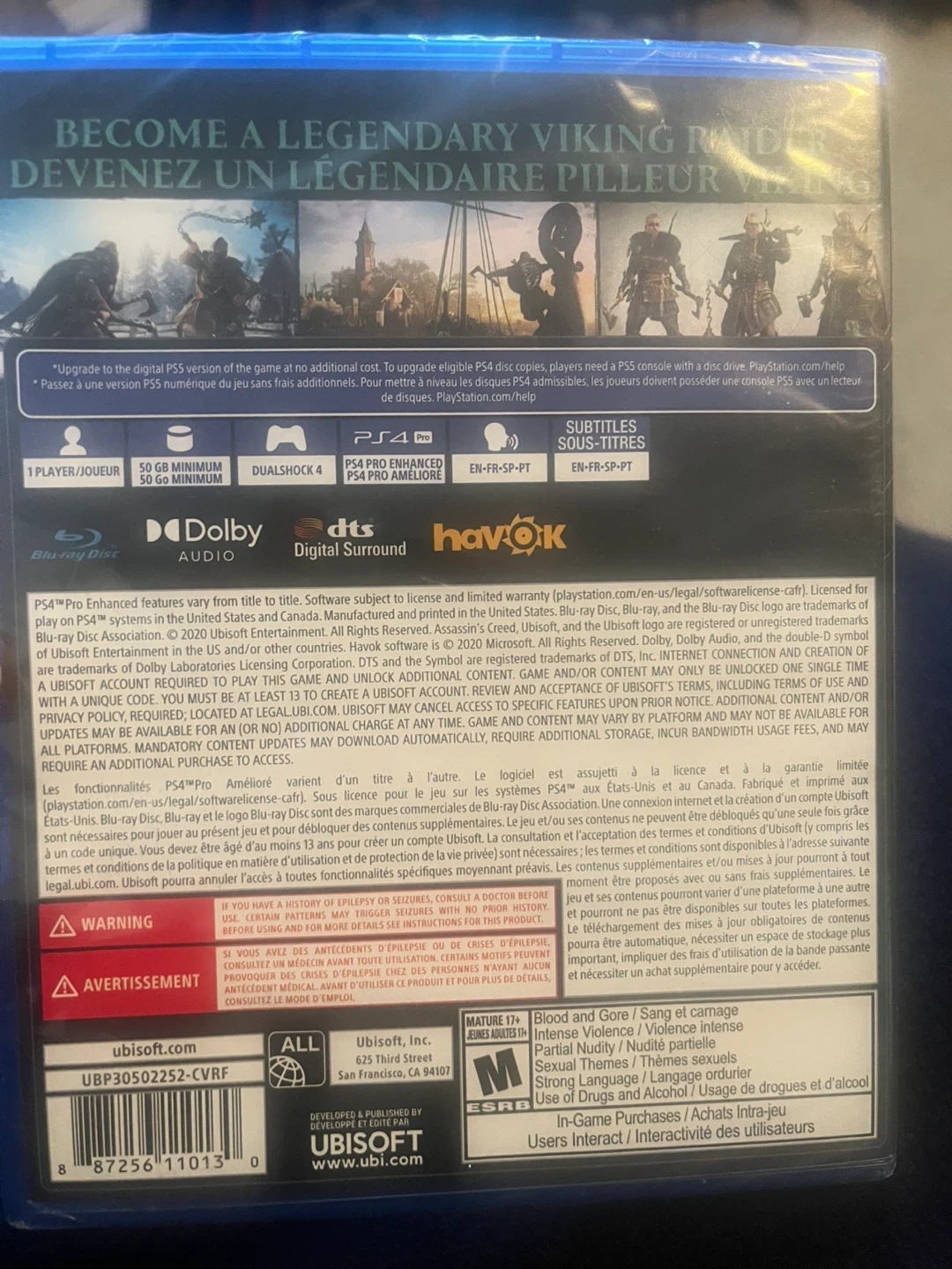 Selling Assassin's Creed Valhalla for the PS4! It's rated M for Mature 17+ by ESRB. Enjoy this legendary Viking adventure!