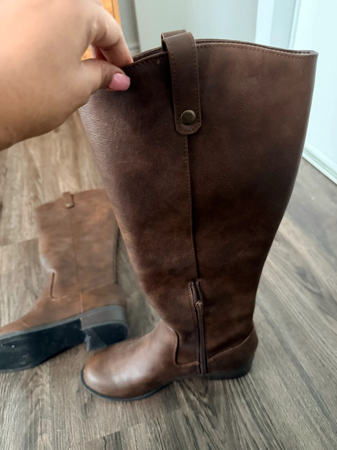Selling a pair of brown riding boots in great condition! They're a size 8 and have a classic look that goes with everything. Perfect for fall and winter!
