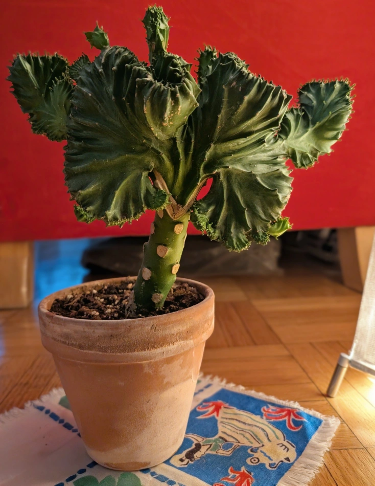 Super healthy Crested Euphorbia cactus. Unique and eye-catching. Has grown like crazy in 2 years.