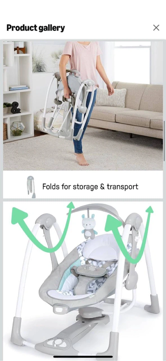 π Ingenuity ConvertMe 2-in-1 Compact Portable Baby Swing & Infant Seat β Grey π