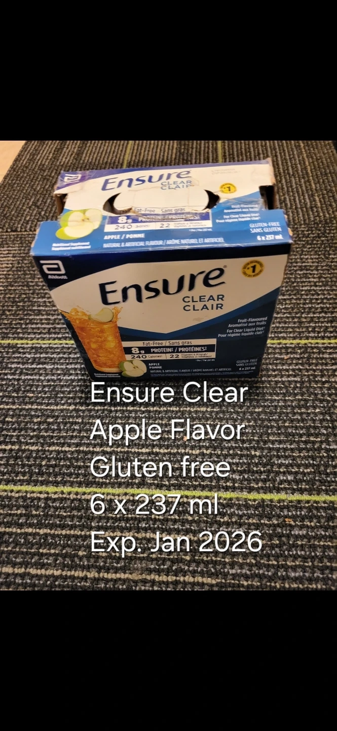 Selling a BRAND NEW, SEALED 6-pack of Ensure Clear Therapeutic Nutrition in a refreshing Apple Flavor. Ensure Clear is a clear liquid nutrition drink that provides essential protein and nutrients without the creamy texture of traditional shakes.