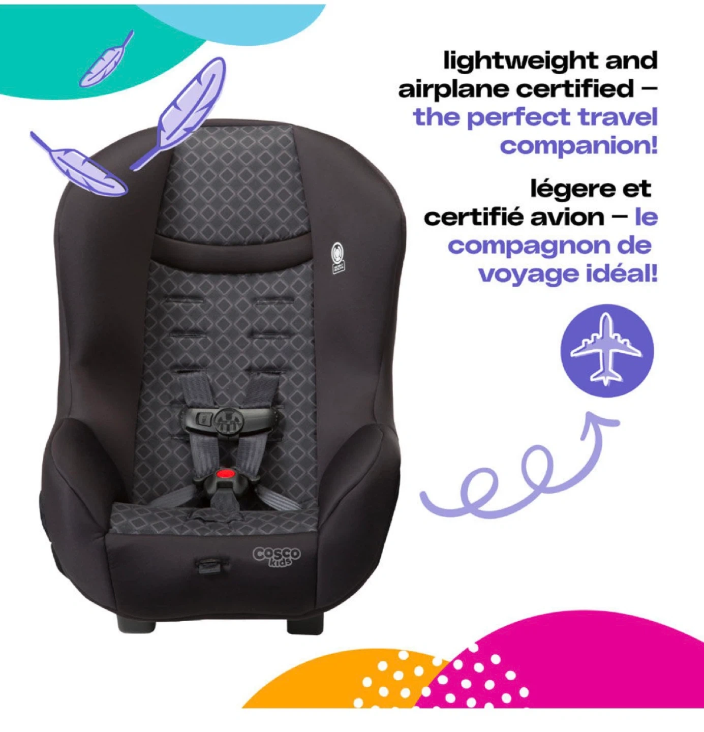 Selling a Cosco Scenera Next convertible car seat in Boulder pattern! It's lightweight and airplane certified, making it a perfect travel companion.
