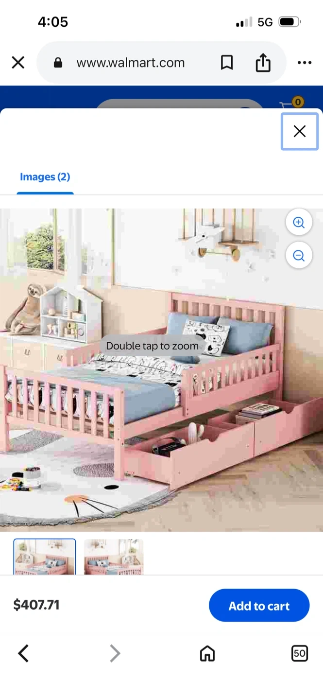 A super cute pink toddler bed with built-in storage drawers! Perfect for transitioning your little one to their first big kid bed. The drawers underneath offer great space for storing toys, books, or extra bedding. It was originally bought for $407.71