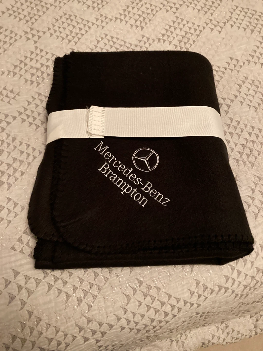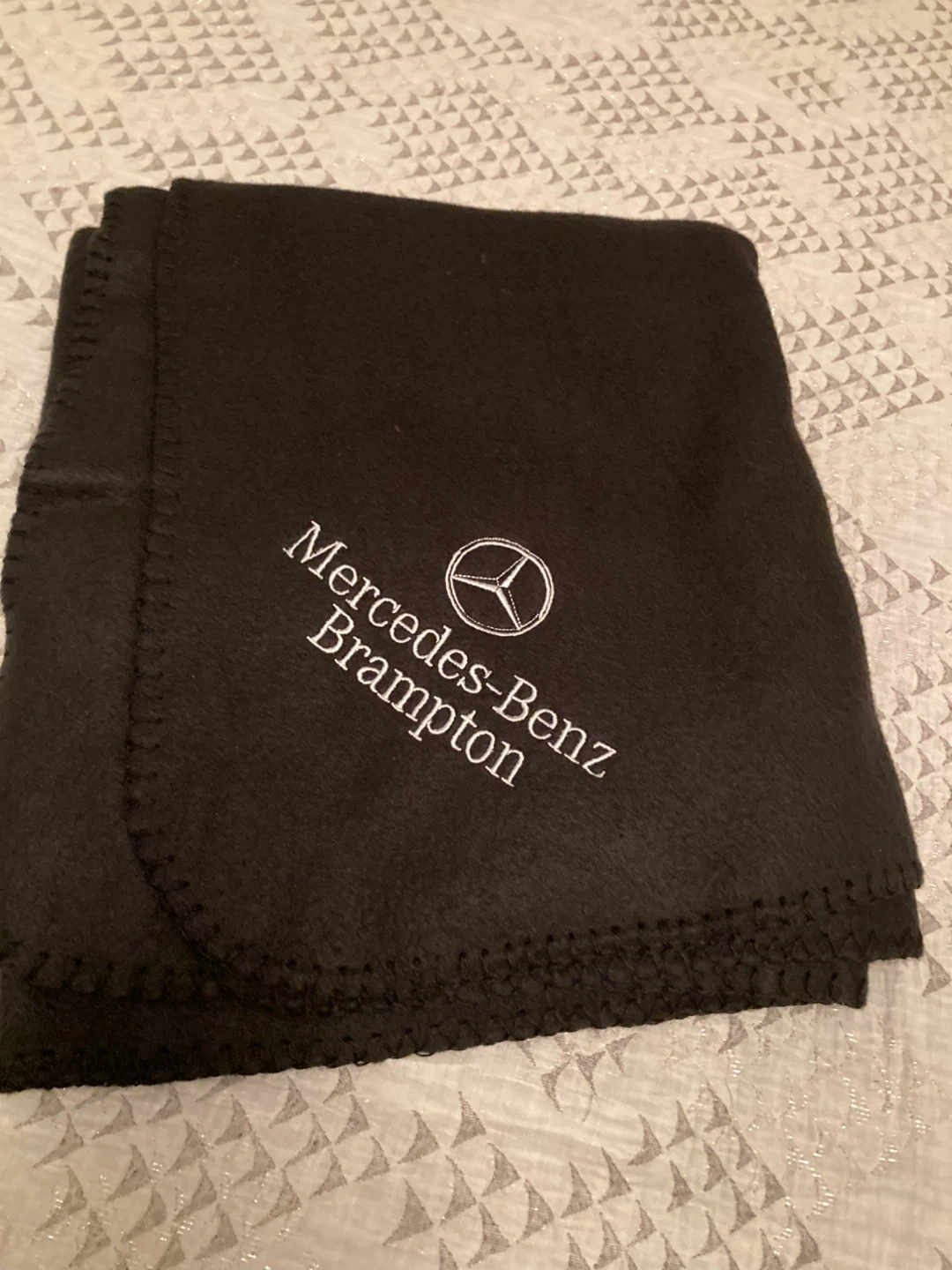 Cozy up with this black fleece blanket from Mercedes-Benz It's a simple yet stylish way to show off your love for the brand. Perfect for keeping warm on chilly evenings or adding a touch of luxury to your car rides