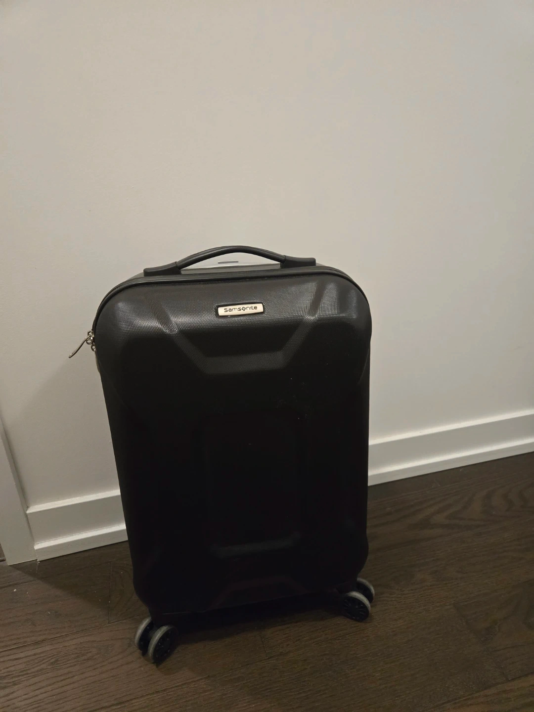 Selling a Samsonite carry-on suitcase in black. It's in great shape and ready for your next trip! Perfect for fitting in the overhead compartment.