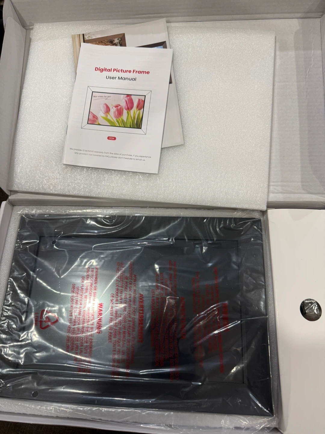 Selling a brand new 10.1” Frameo digital picture frame by Akimart. This frame is perfect for displaying your favourite memories!