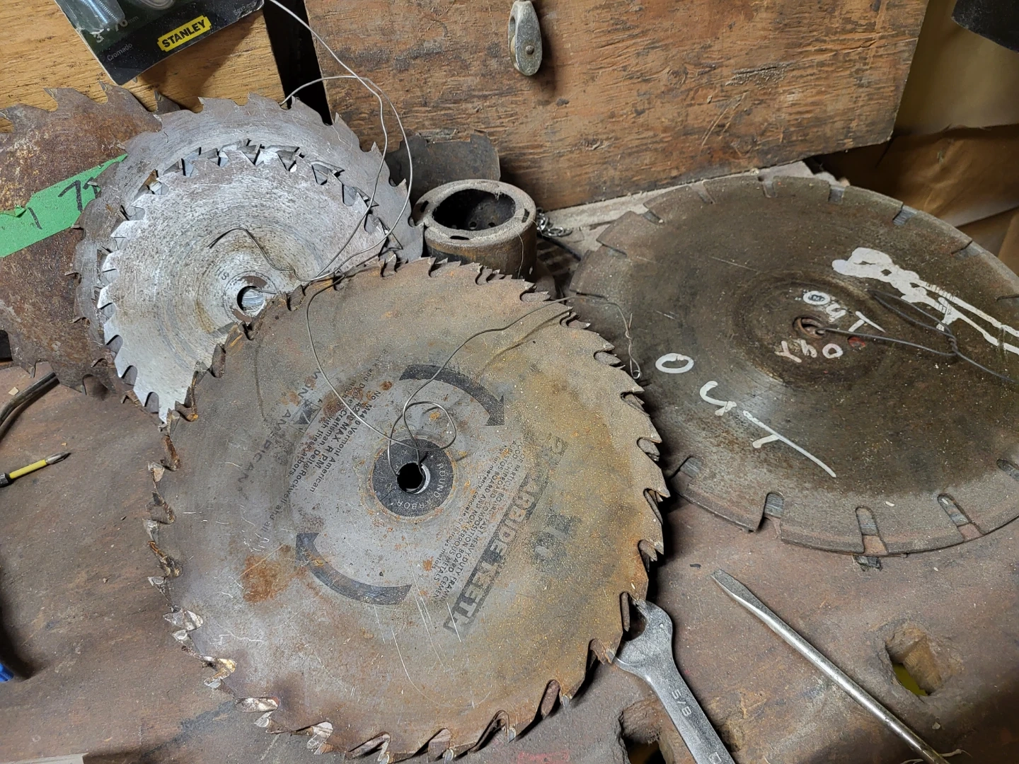 I have a few saw blades for sale. They look like they've been used, but still have some life left in them! I count 11. Will part out. Price is for them all.