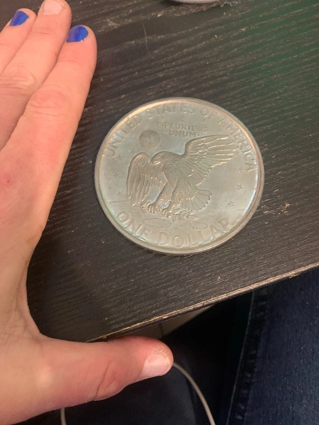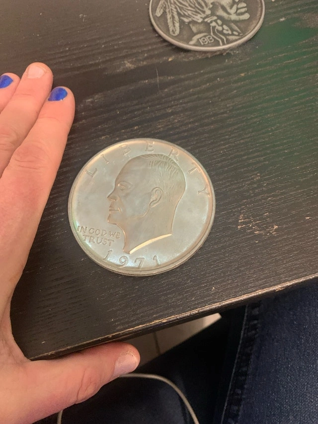 I'm selling an Eisenhower Dollar. This coin is in used condition, as shown in the pictures. This hefty dollar coin features a detailed engraving of President Dwight D. Eisenhower on one side and an eagle on the reverse. A great piece for any coin collector! Whether you're a numismatist or just love a good piece of Americana, this coin is a great find!