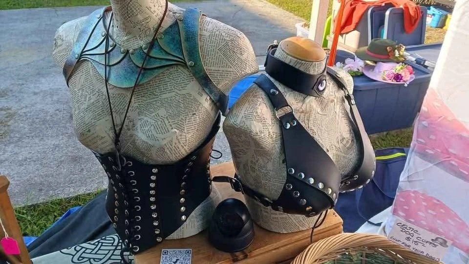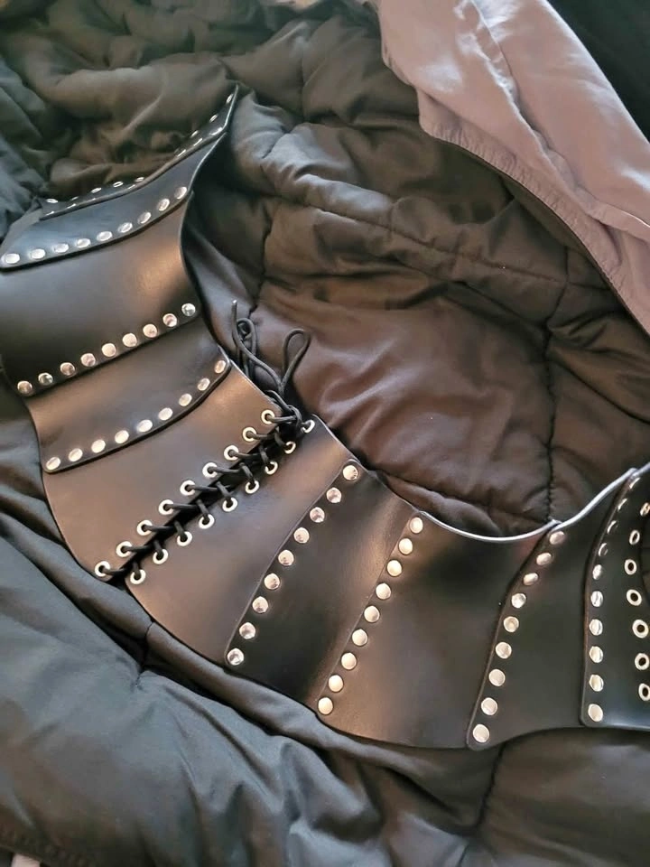 Real leather handmade corset from Sword and the Stone Crafts here in Ontario. Purchased in 2023 at Royal Mideval Faire.