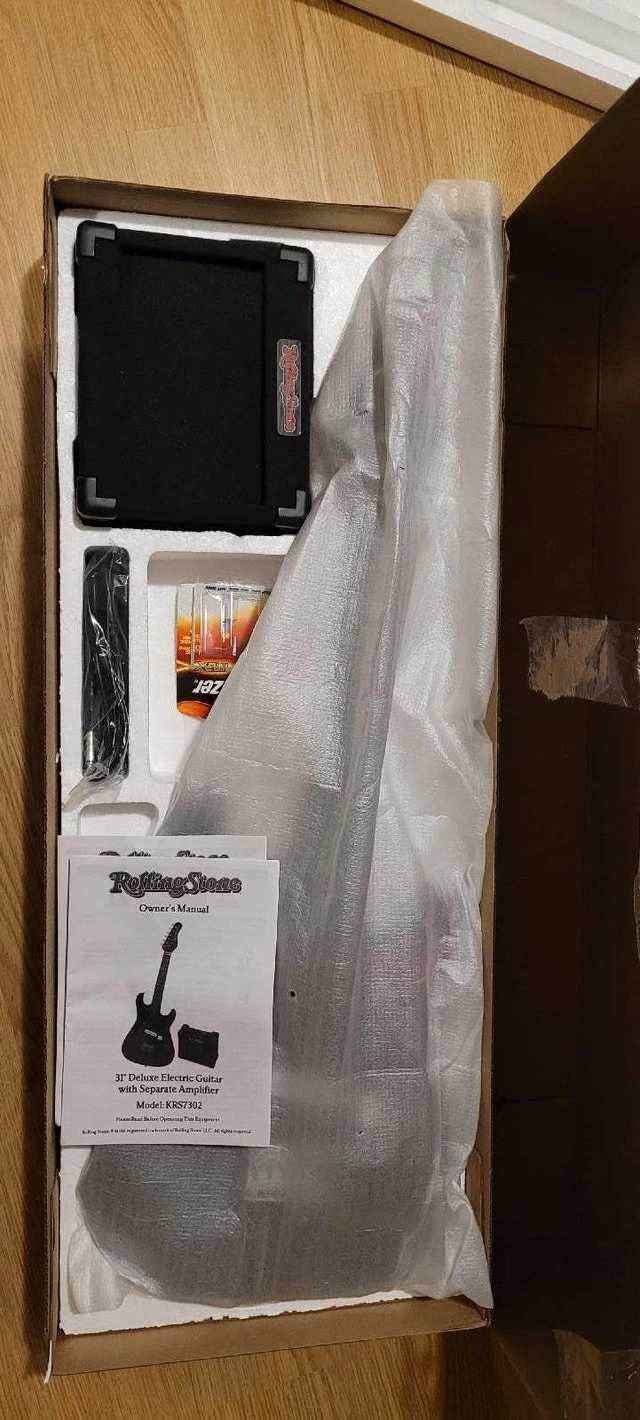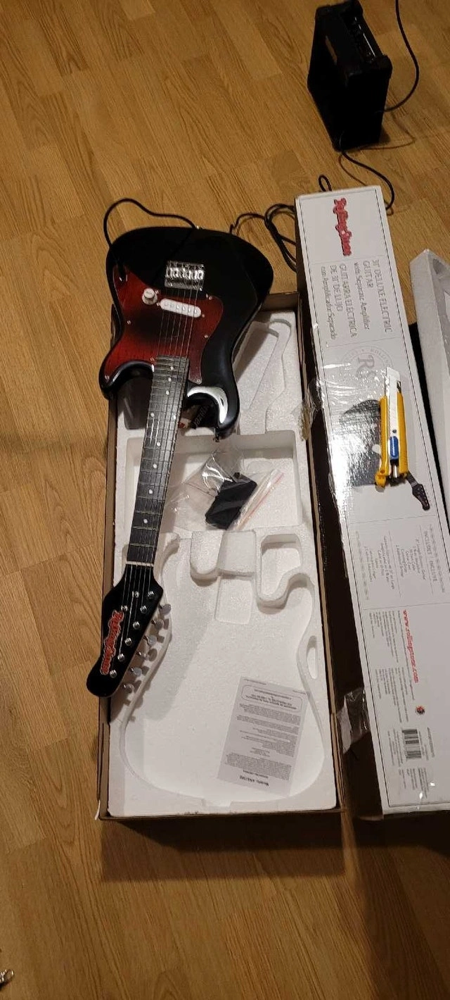 Rollingstone electric Guitar Starter Kit – NEW (Tested, never used) Never used — only tested to confirm everything works perfectly. Includes: RockJam electric guitar, practice amplifier, cable, strap, case, 2 strings, original box & packaging. Great beginner setup for learning guitar. Perfect for students or anyone starting out. Everything you need to plug in and play. No damage, no issues, clean and ready to go. Pickup preferred or meet up. Cash or e-transfer accepted. Condition New (opened, tested) never used. I don't even play music