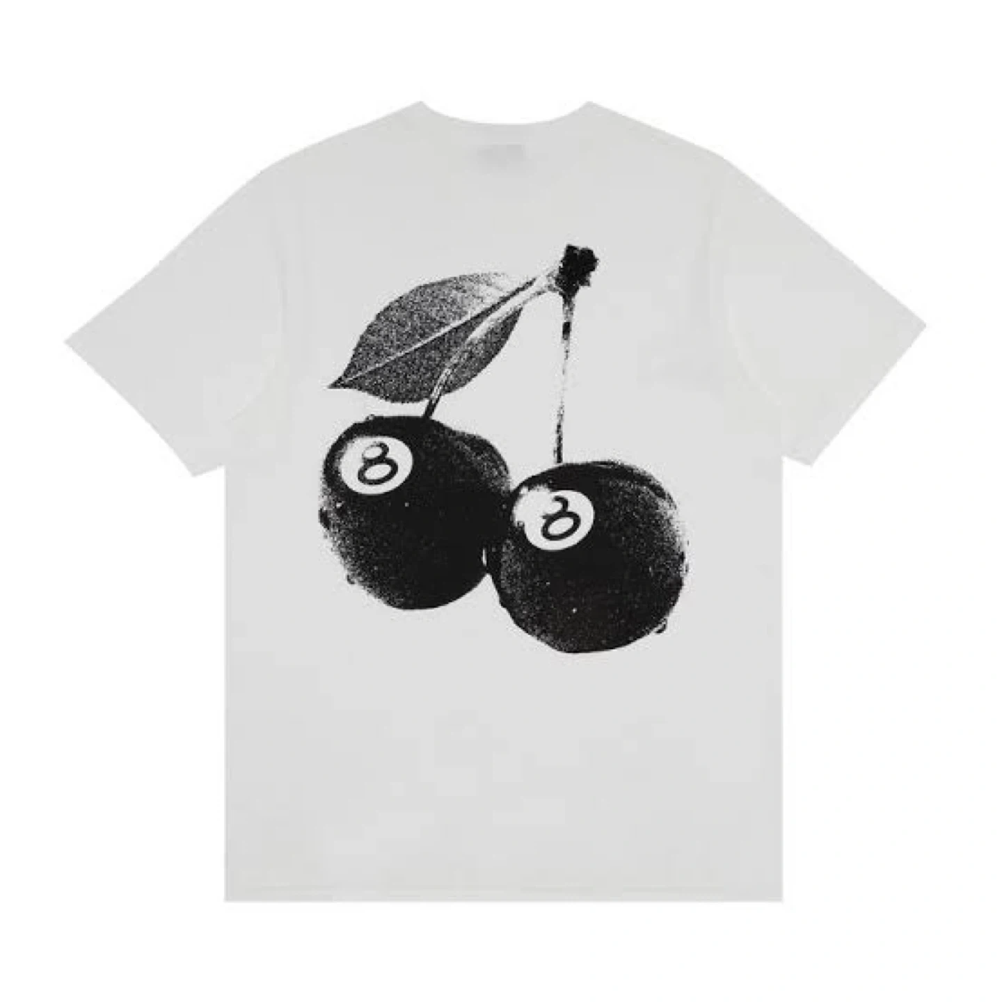 Selling a Stussy T-shirt with a cool 8 ball cherry design on the back! It's a size small and in great condition. The shirt is white with a black graphic. Perfect for adding a bit of streetwear style to your wardrobe