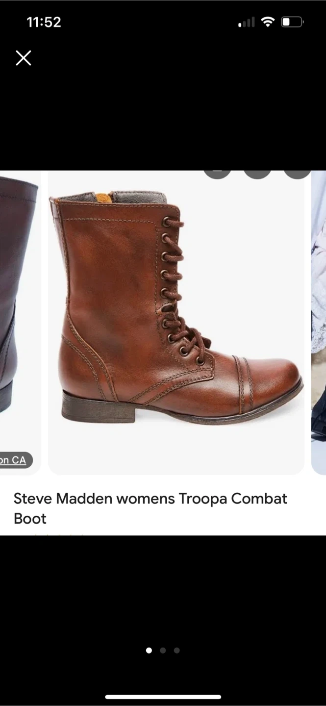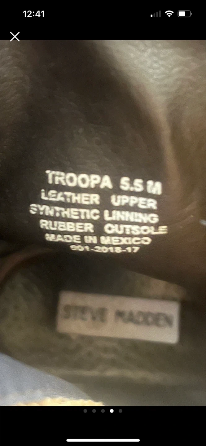 Selling a pair of Steve Madden Troopa combat boots in size 5.5. They have a leather upper and synthetic lining with a rubber outsole. These stylish boots are perfect for adding a bit of edge to any outfit!