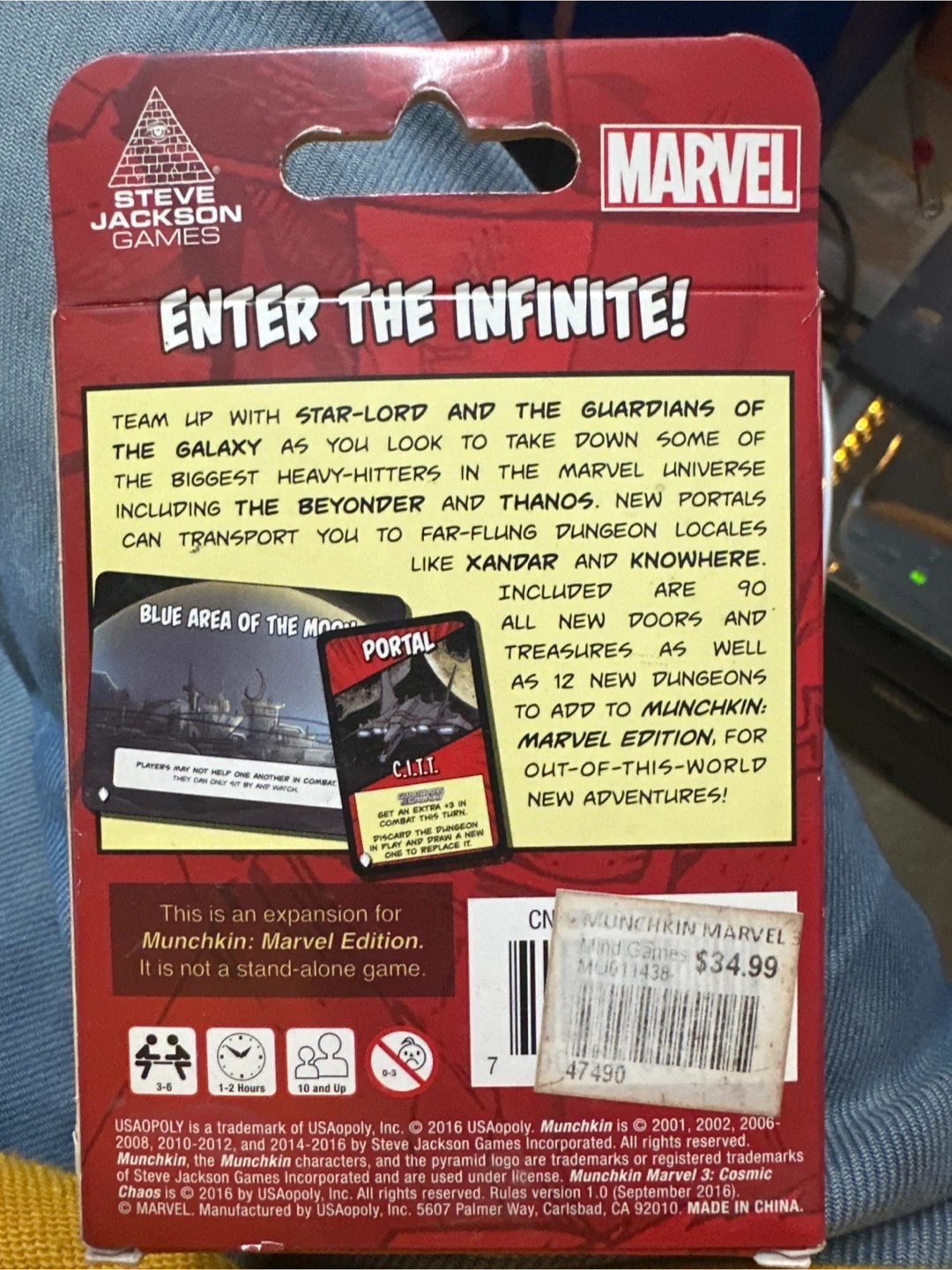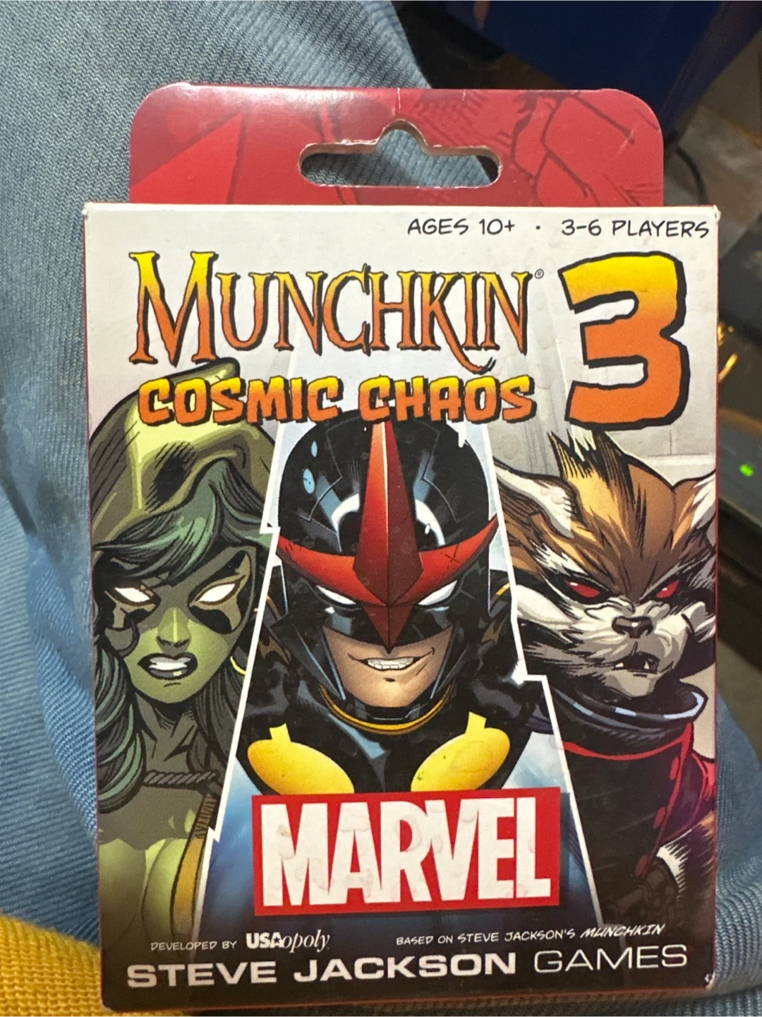Selling the Munchkin Marvel 3 Cosmic Chaos card game! It's an expansion for Munchkin: Marvel Edition, so it's not a stand-alone game. Ages 10+, and for 3-6 players. Originally bought for $34.99