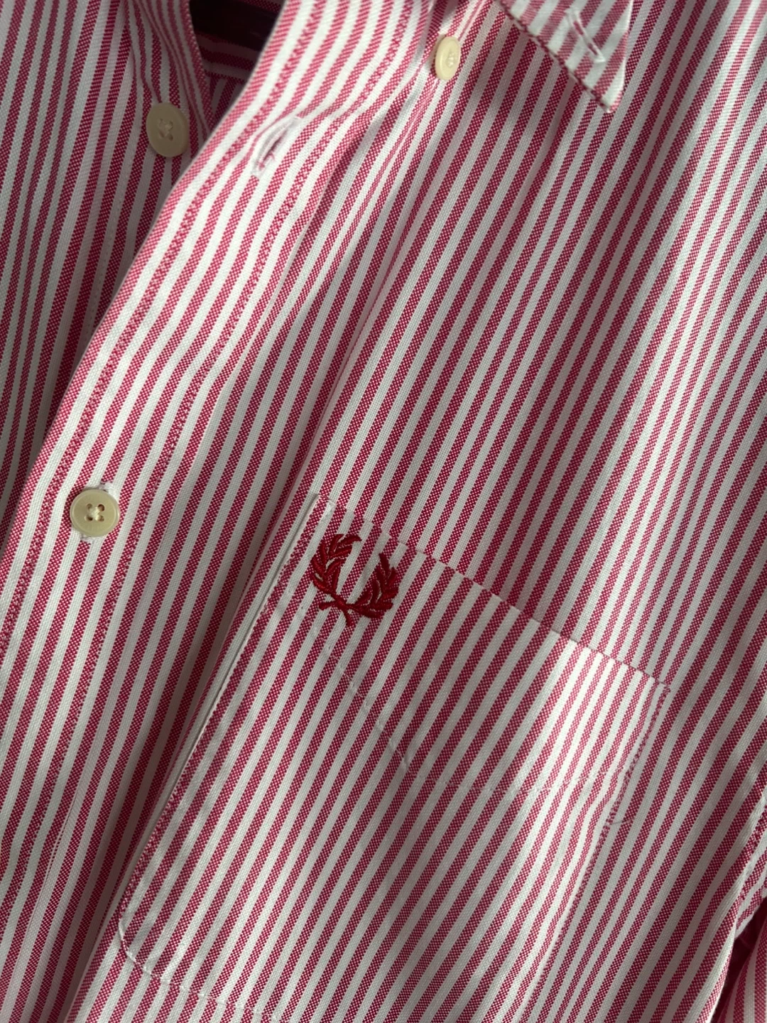 Here's a Fred Perry striped shirt in size small! It's a classic piece with the iconic Fred Perry logo. Perfect for adding a touch of style to your wardrobe. Its never worn selling since i never really wore it before. Retail price is around 100+ USD.