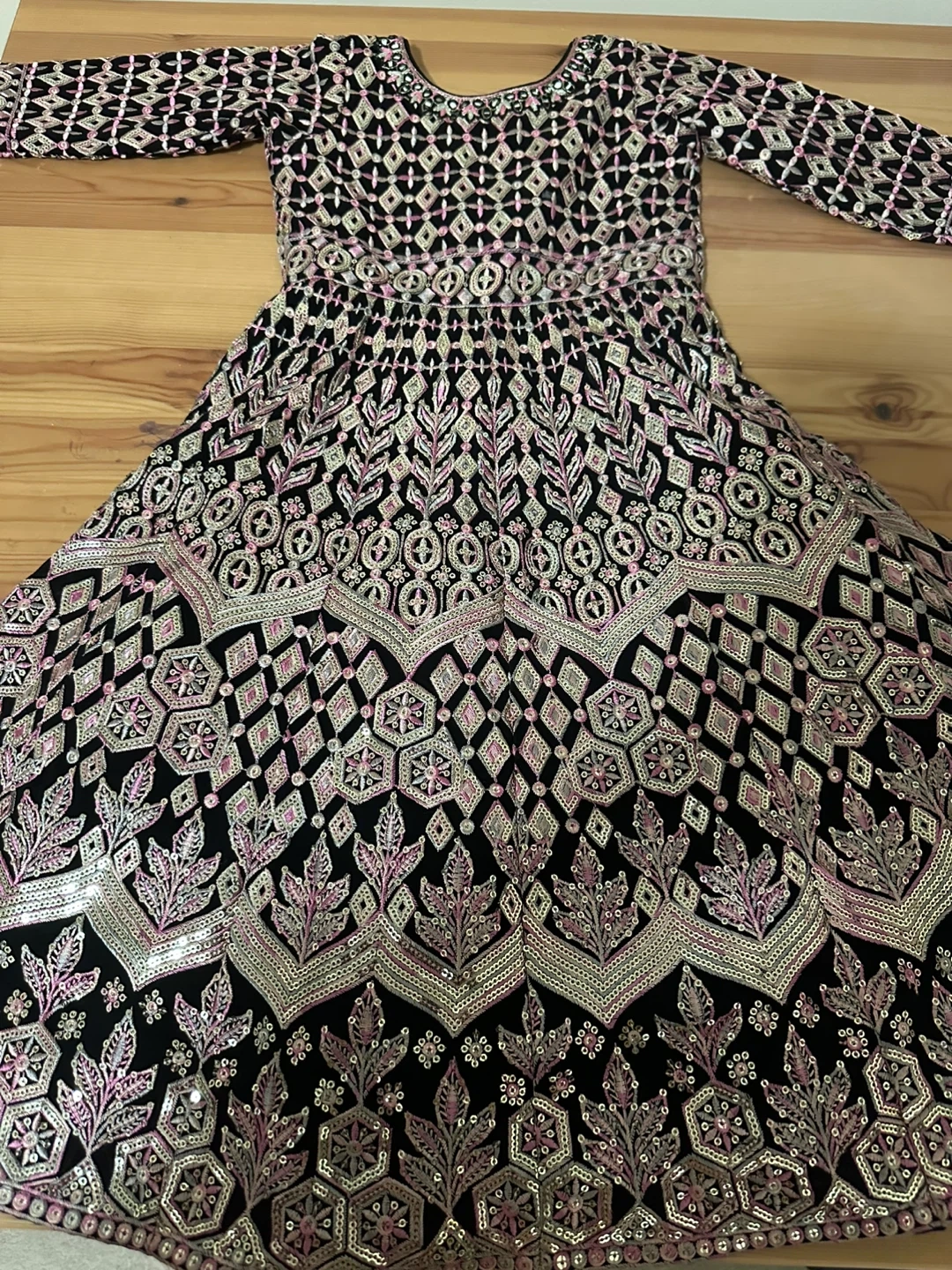 Beautiful black dress with intricate embroidery! It's in great condition and would be perfect for a special occasion or just feeling fancy. The details are really stunning up close